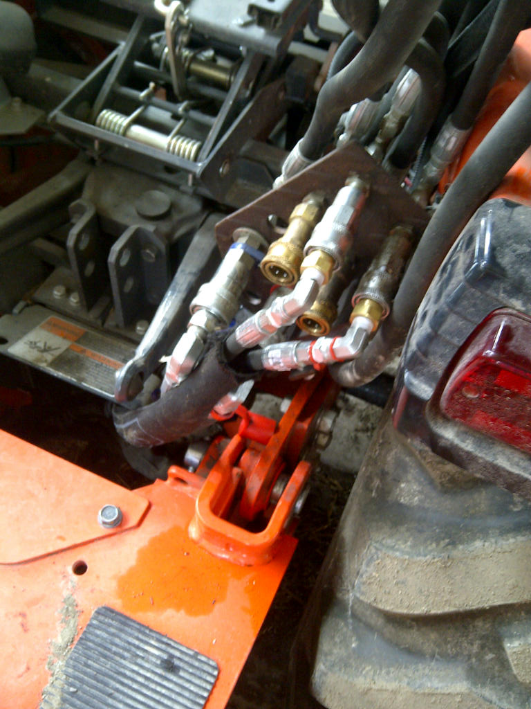 I cheaped out and ran them off one of my other pairs of rear QD's rather than a valve mounted on the BH itself. If I get fed up with having 4 hoses to connect and have an extra $500 burning a hole in my pocket I might switch but for now, I'm up and running. The only mods I've done that aren't easily reversible is to weld 2 mounts on for the hose clamps. If I ever needed to it would take me about 10 min max to remove this and put the mechanical linkage back on.