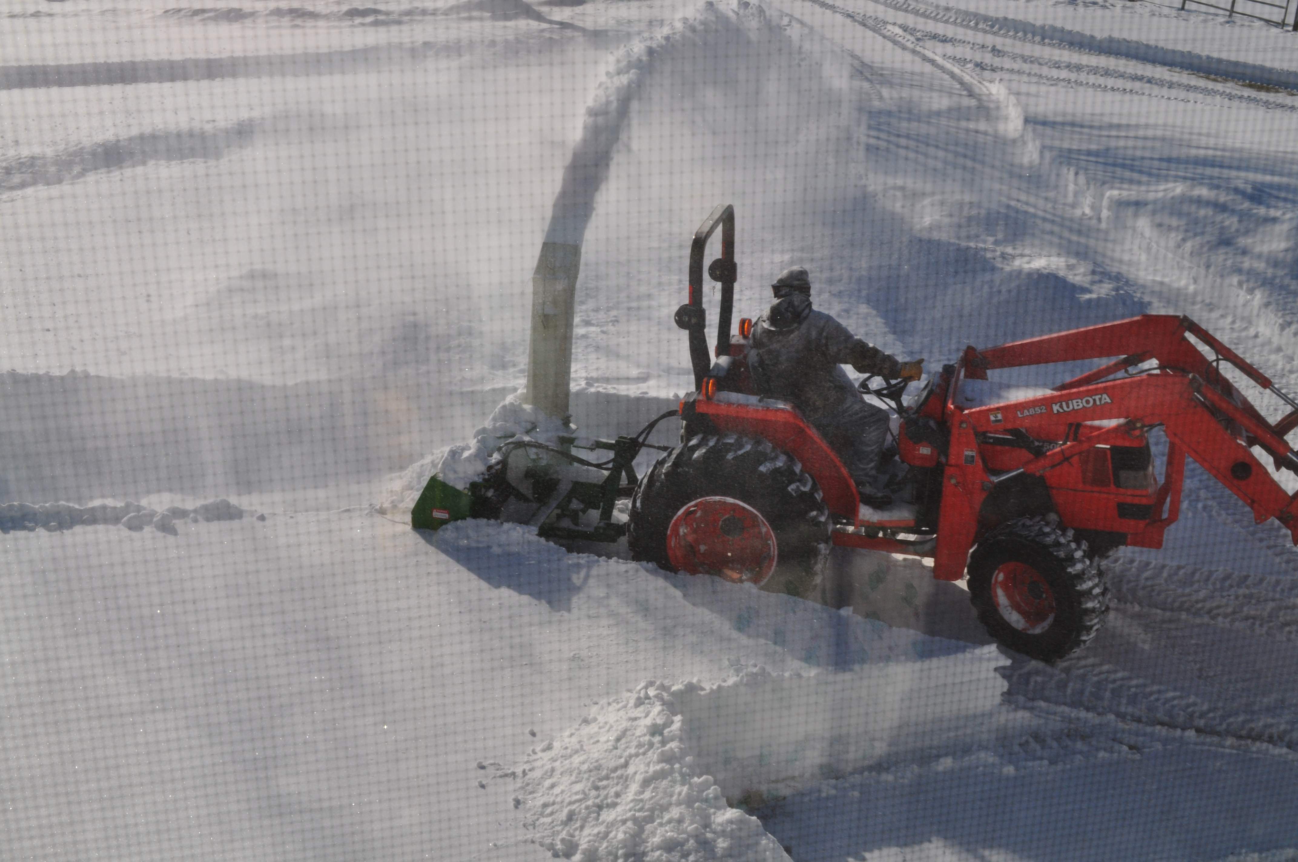 This is the second winter I have had the front mount blower, so far owning it is working too well at keeping the snow away, we have yet to have a snowfall that is enough to see what it is capable of. I suppose one day I'll get to run it in a snowfall like the one in your photos.