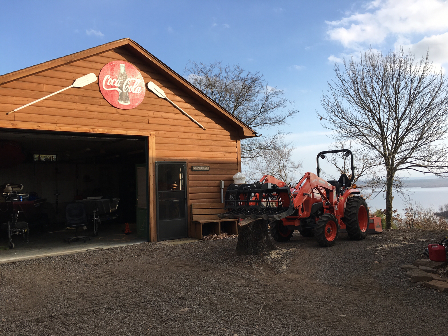 After changing my 8x7 garage door to a 9x12 to avoid dropping the ROPS, I found it easy to park the boat, the Kubota, and even my truck inside my shop two at a time.