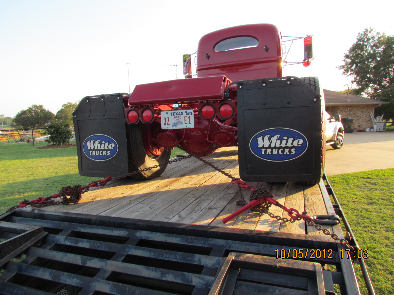 Just so happens I loaded up my '56 White Friday to take it to Temple, Texas to the Texas Early Days Tractor and Engine show. This is how I tie down my trucks or tractors.