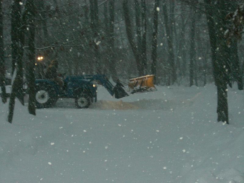 We got over 2' here in Mount Airy last weekend and woke up this morning to another 6" or more. Plowing with the blade is mostly ineffective as there is nowhere for the snow to go, which means lots of FEL work (2WD gear shift, chains now on order!).