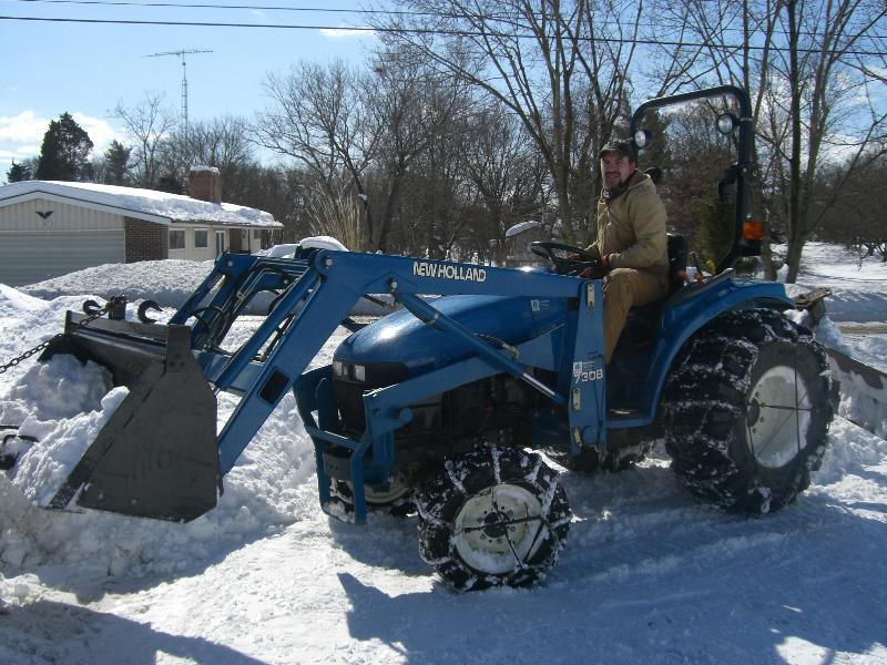 The guy that followed was on a JD 5055 cab ( i think... know it was 50xx) and he was pulling a rear blade and kept getting pulled to the side by the resistance of the snow. I think he would have done a whole lot better with chains. R1's + ice didn't make for alot of traction.