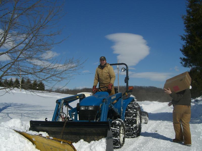 20+ inches on Saturday then another 20" yesterday. Out plowing with tractor & moving big piles with LB115 backhoe. Here's one of my guys in my Challenger 48HP plowing out a Customer. I'll see if I can get some backhoe pics. I actually delivered a lot of firewood before the 2nd blizzard hit. We've had a record 70" snow in nearby Wilmington, DE.
