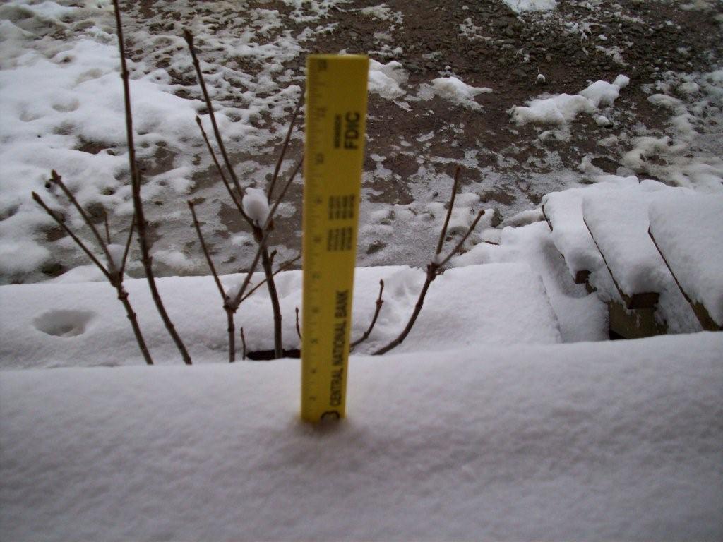 Ended up with about 4" here in OK last night, melted down to 2 1/2" overnight.:D As you can see in the background some places down to nothing. It is always a hoot to watch the Dallas news when it snows down there.;)