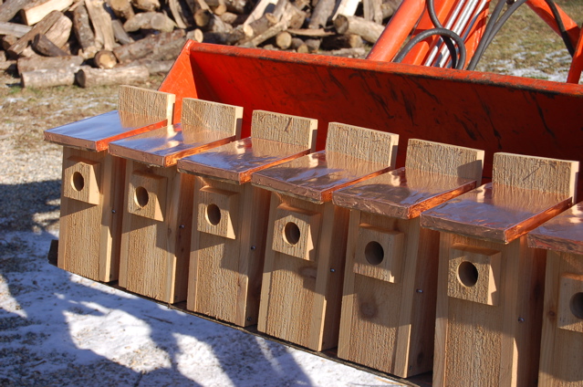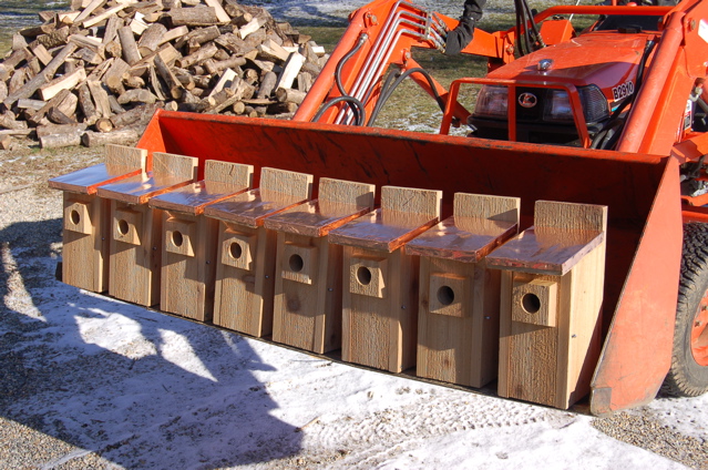 Chris, very nice houses! Did you make sure that you can open up a part of the box to clean out the nests at the end of the year? It's important to do that only because they build up over a few seasons and they don't like to use them afterwords, not to mention the amount of crap (literally) that builds up from the youngsters before they leave the nest. It also helps to have access to the nest in case a sparrow slips in and you don't catch it until the nest is built, that way you can take their nest out and let the BB's try again.
