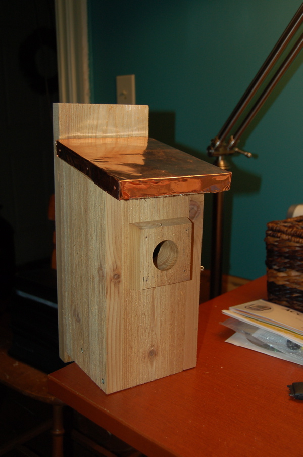 That copper will be brown then green within a year. I actually copied some boxes from Feathered Friend.