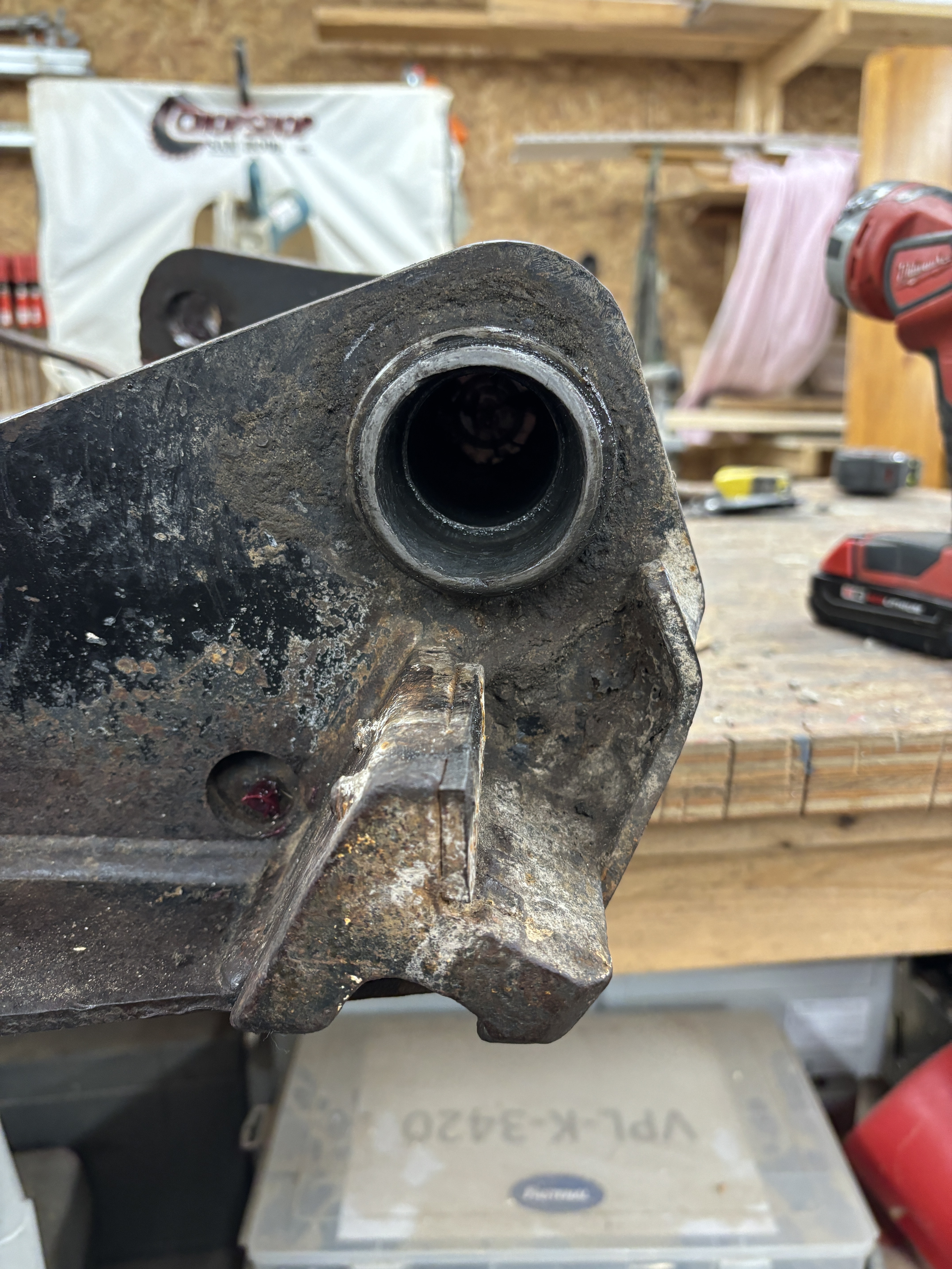 I have a 763 Skidsteer and 1 side of the Bob Tach plate is out of round. I have a new bushing for it, usually that just sits in there and holds the pins that attach to the loader arms. My question is should I weld the new bushing in place to keep if from moving around? Any other ideas? I have included a picture of the out of round side and the other side where the bushing went in OK.