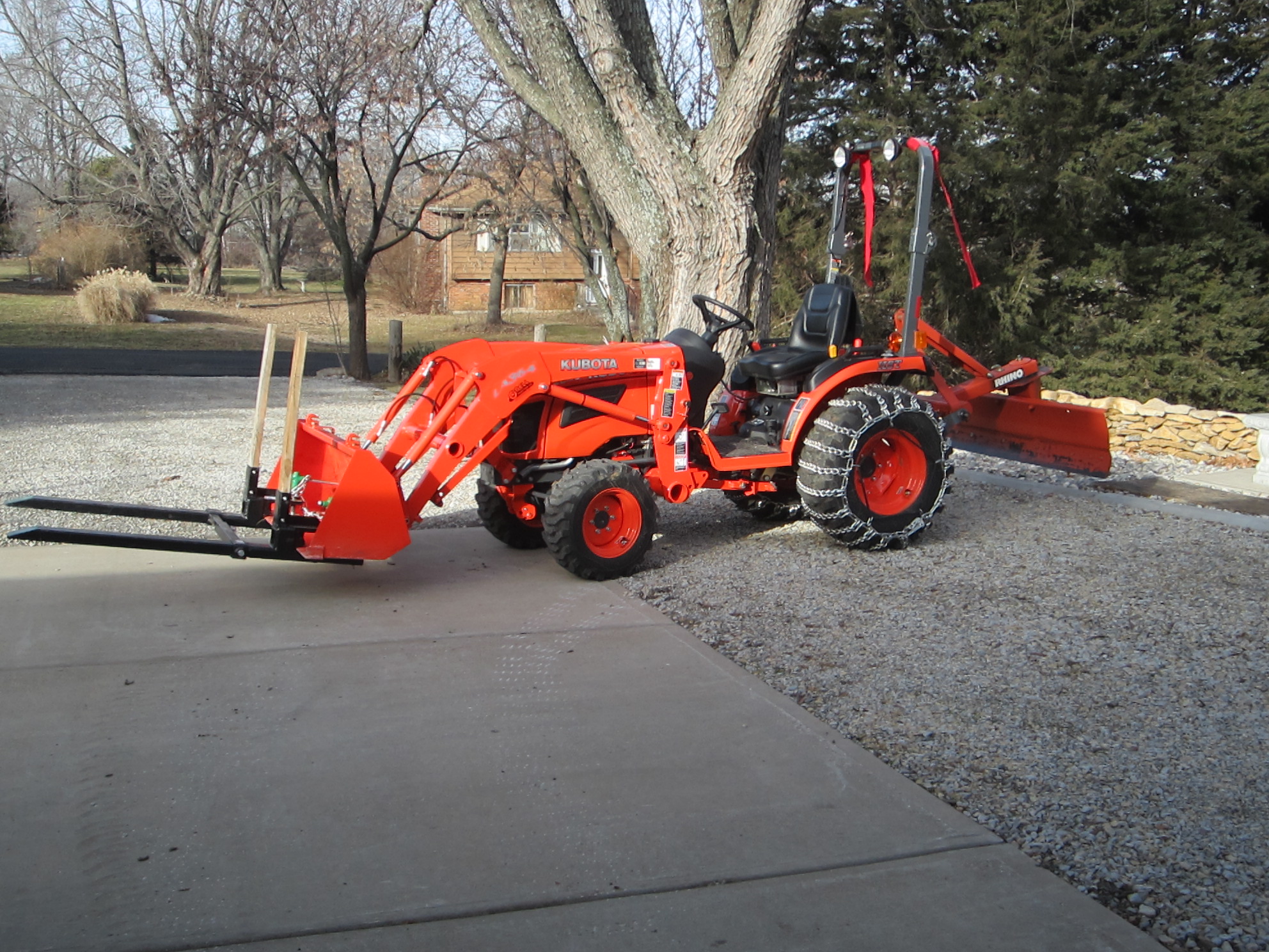 I only use the tractor about 15-20 hours a YEAR, and it is a Kioti 25hp CUT. So the forks won't be used to lift any super-heavy pallets. Probably mostly used to move brush, and maybe a medium weigh pallet load. Now that I consider it more, the longer ones might be better for what I want to do. Easier to see out there in front. ?