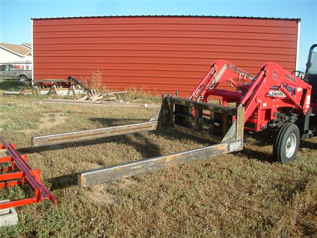 One nice thing about this setup is that you can easily build your own stuff to attach to the FEL. Like this bale squeeze I welded up last year. You can buy the weld-on skid steer adapter (the black thing in the photo) for less than $150 and then weld it to your project