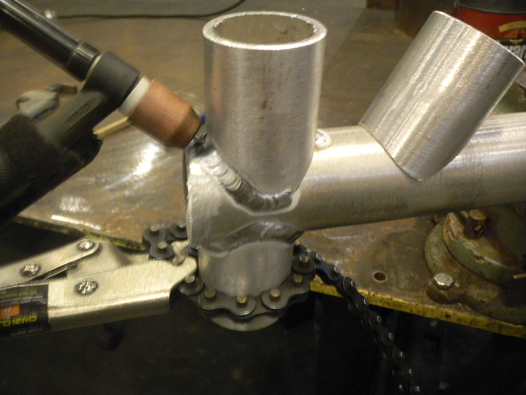 This aluminum weld was made with one of my Everlast stick welders with 100% argon, and a Tig rig. Without a foot pedal you can only make short welds. No way to back off the power as the aluminum gets hot.