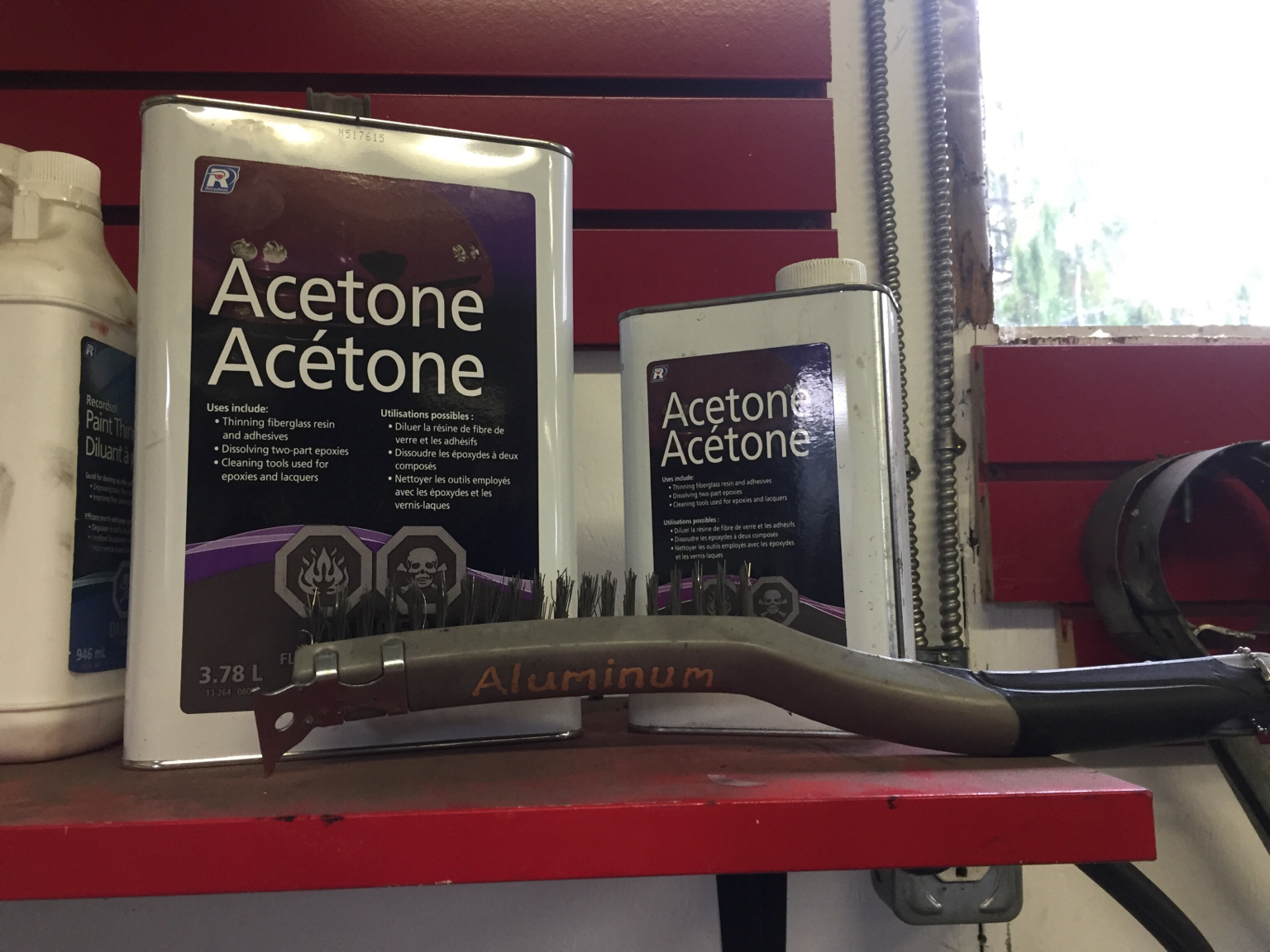 Thanks Terry. They tried to sell me some "aluminum cleaner" in a spray can at the LWS but I balked, thinking that with a little research I'll findt some existing solvent that's cheaper.