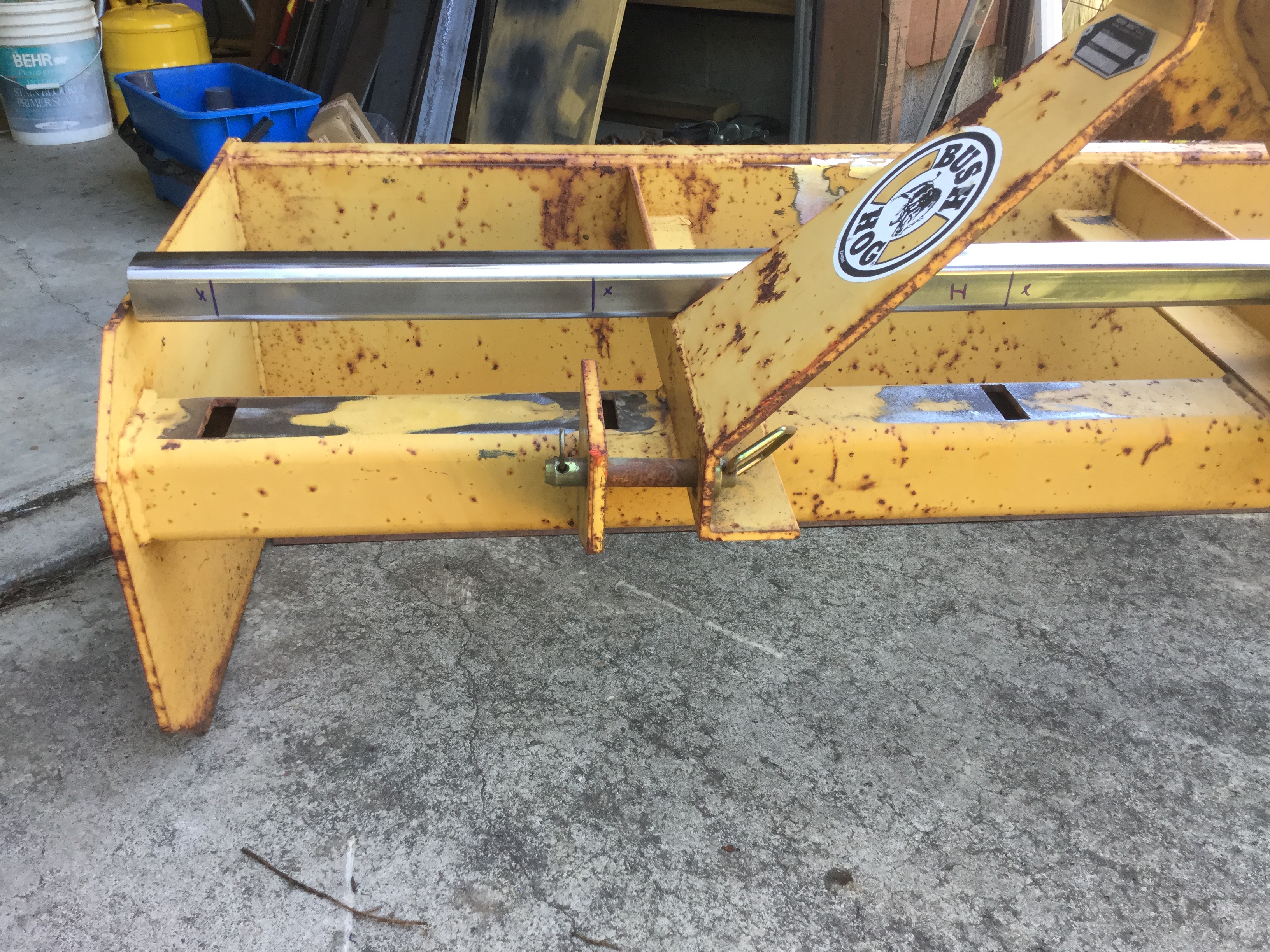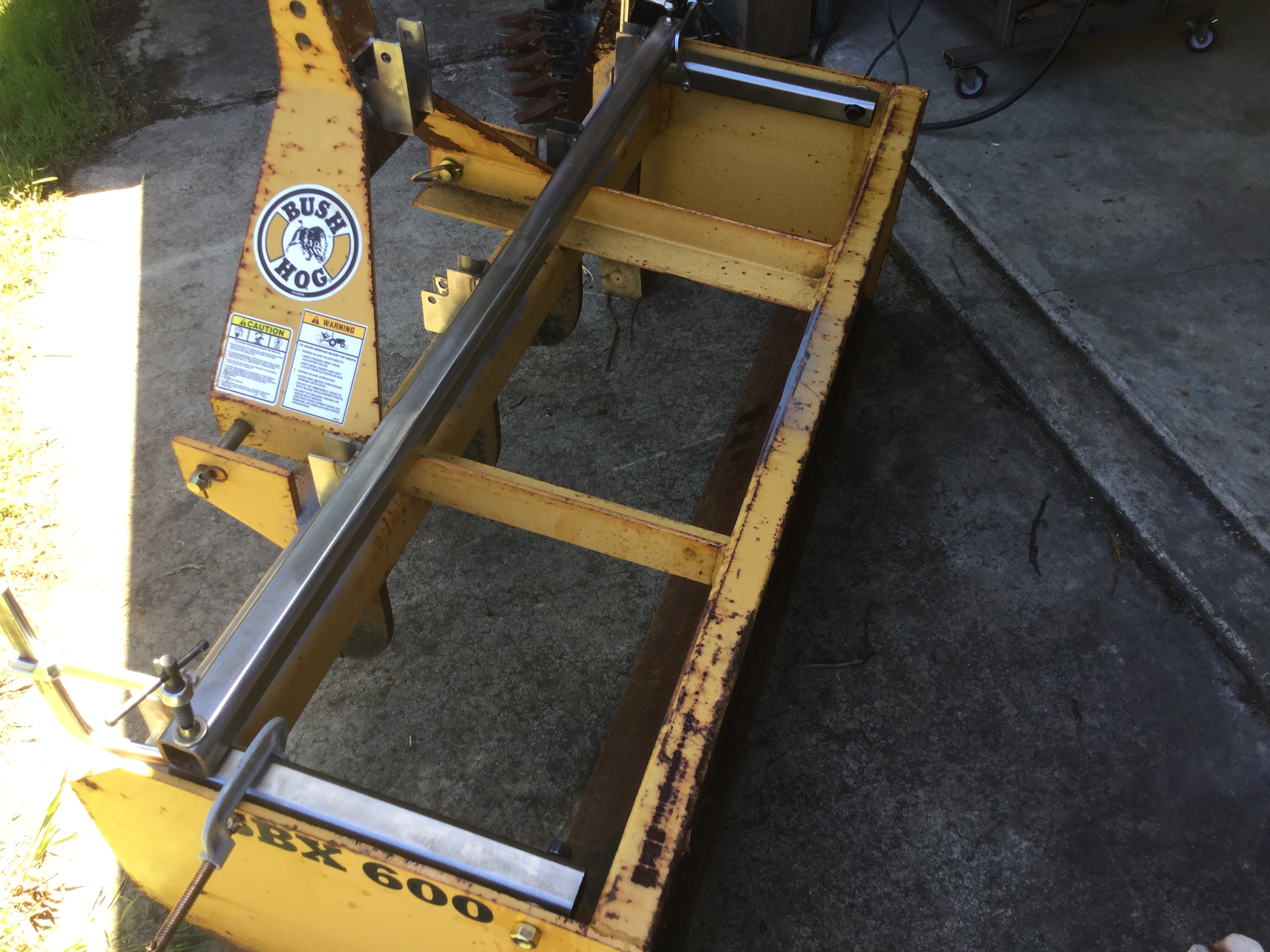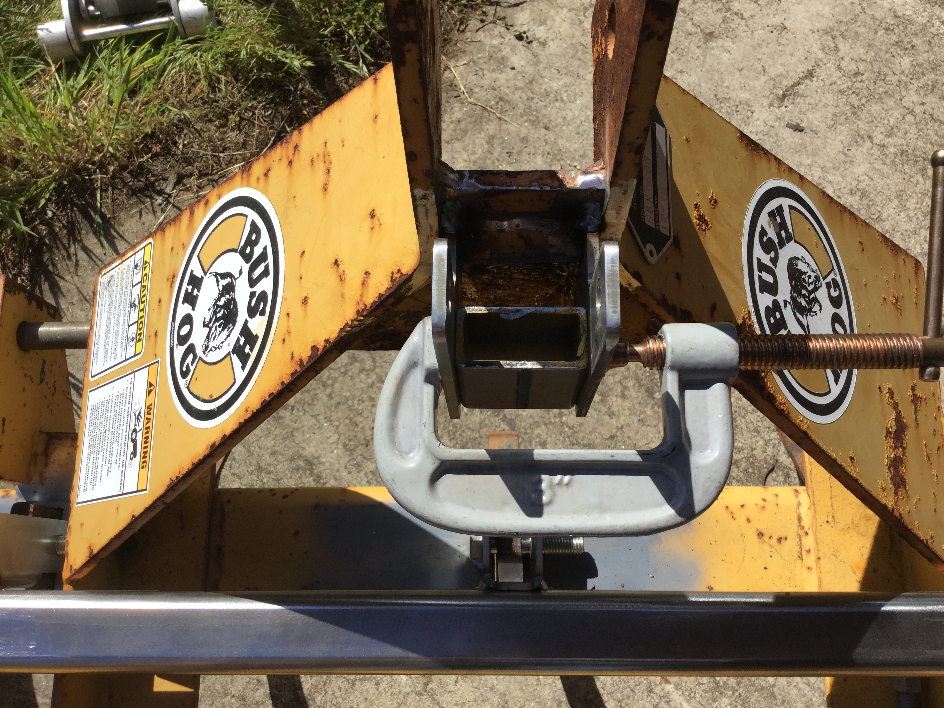 Photo 4. The Bush Hog with pin retainers cut off and old welds sanded down.