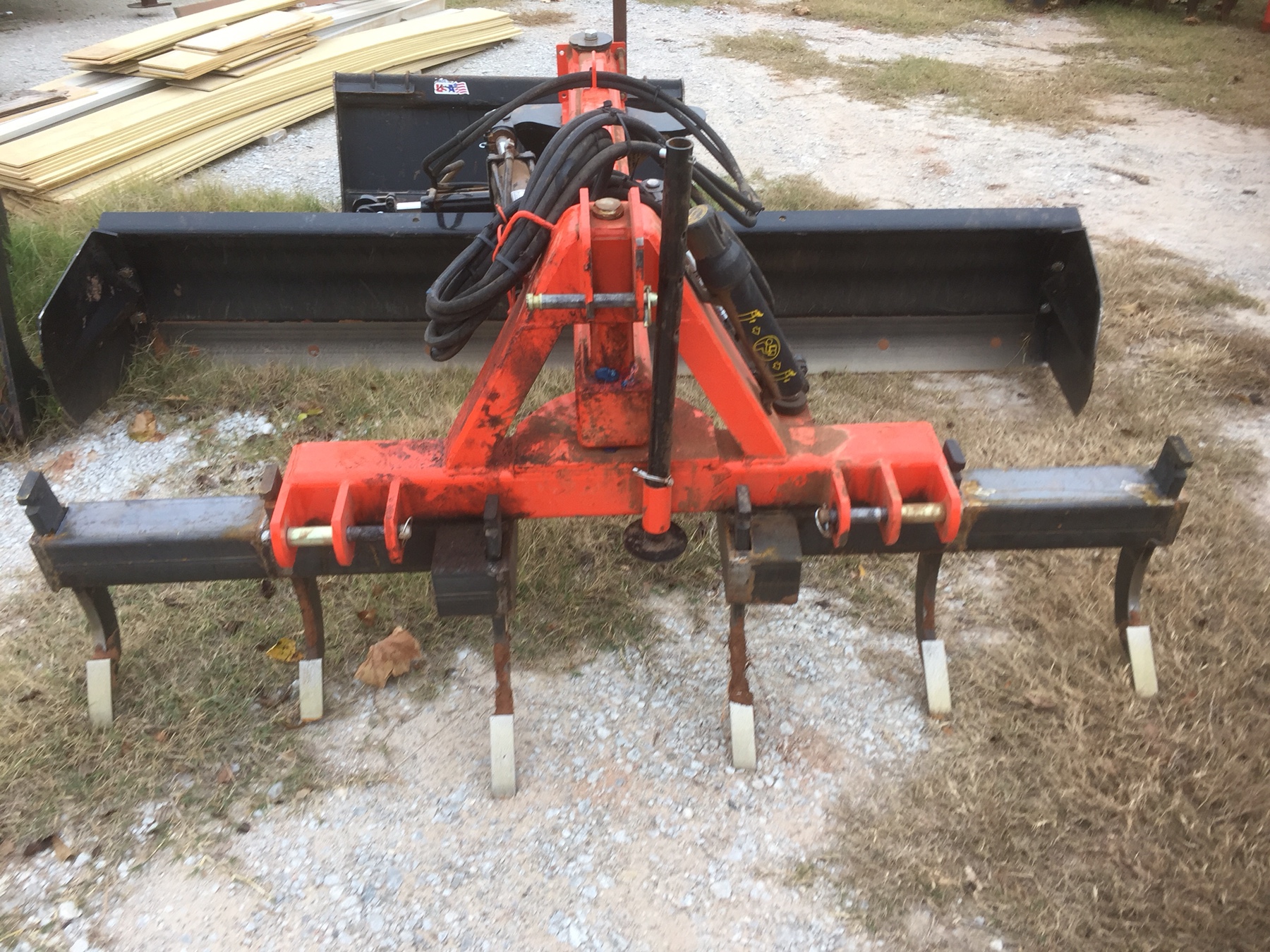 As has been said, WEIGHT is where it's at when talking box blades. I found that with my 84", which is 1,200lbs, and an hydraulic top link I can angle it and peel up sod: I actually get sod rolling up and on to the front of the box blade which only adds to the effectiveness as that increase weight. Have hydraulic scarifiers (rippers), but soon found out that they work better at anchoring the tractor than in tearing up the ground! (raking the box blade to have the rear cutter dig in is more than sufficient in tearing up soil, for me that is). Although it's not real efficient, a box blade can do pretty well at grading, but in reverse!