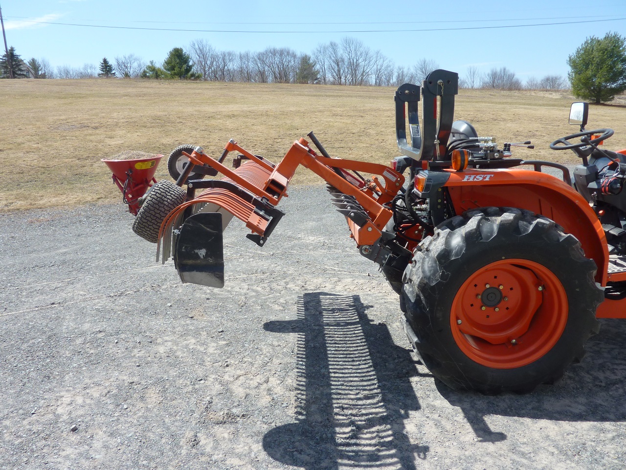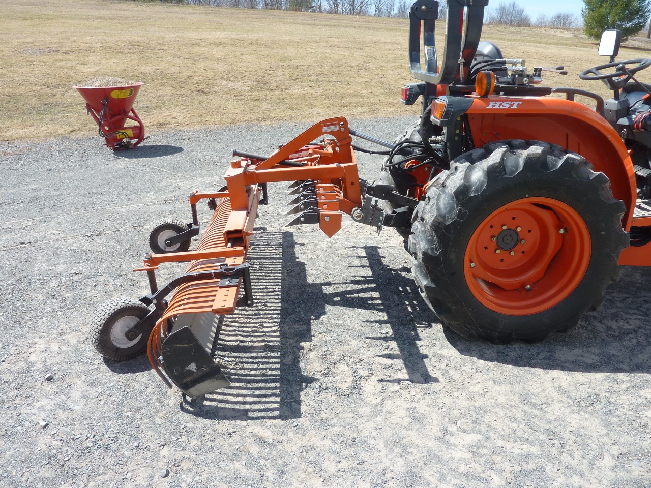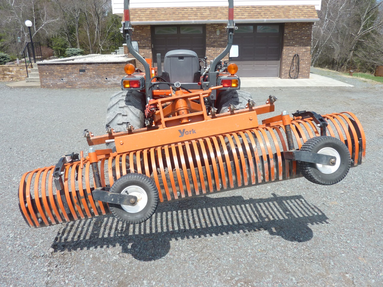 For almost 35 years now, I've been maintaining a 1.25 mile private road along with several 300+' driveways. Due to the slope involved, it is essential to maintain a good pitch to the 16' wide road in order to shed water. I've used both a 1000 lb box blade and an 800 lb rear blade but neither can compare to the work I can do with my 700 lb York rake. I have it fitted with a scarifier bar, grader blade, trolley wheels and a T&T kit from Fit Rite (Thanks Brian!).