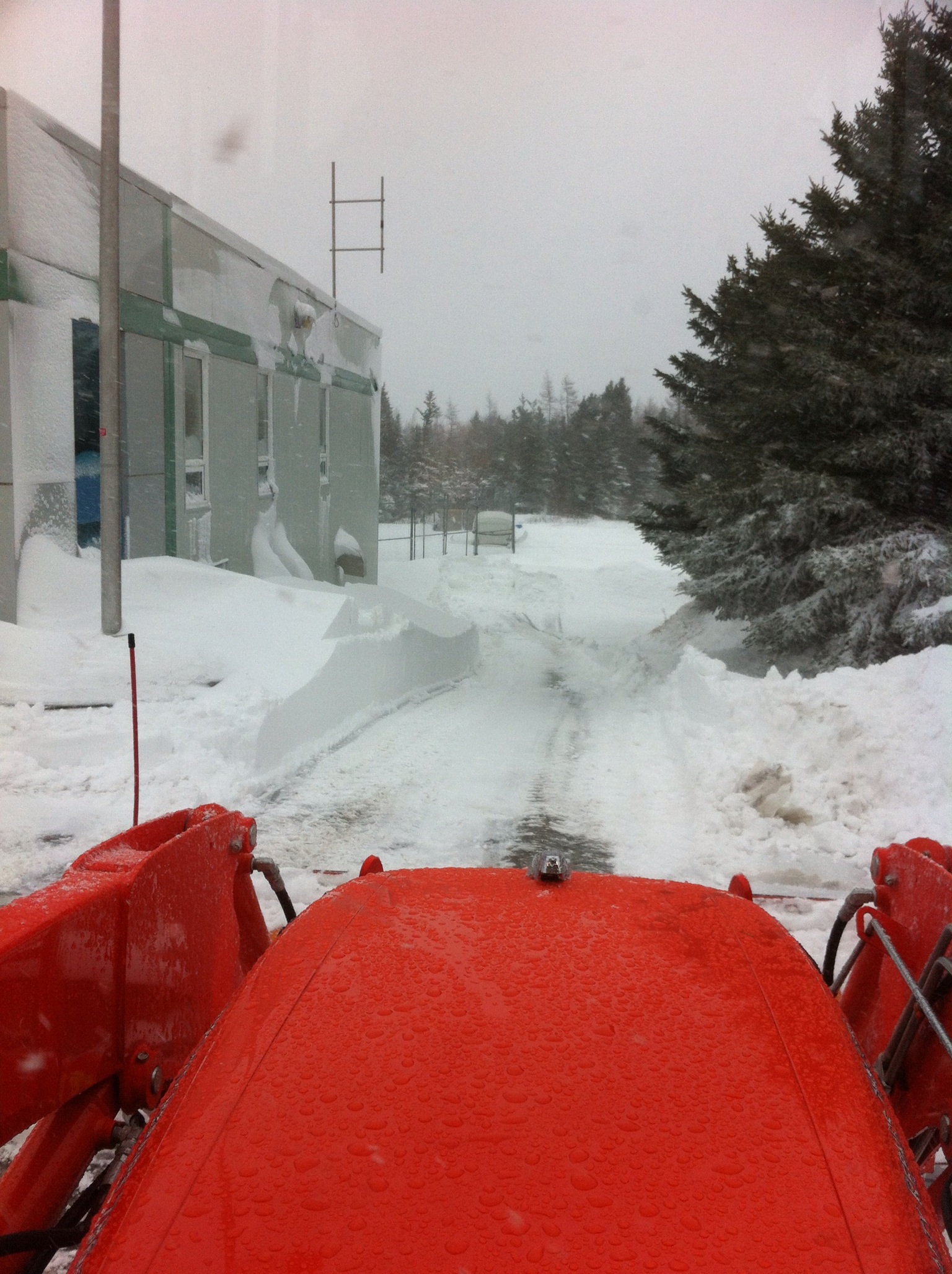 We had 120 plus kph winds. 50-70 cm's of snow then later in the day started to drizzle. I seen drifts up to five feet high. Spent almost nine hours in the seat and heading out again tomorrow :cool2: