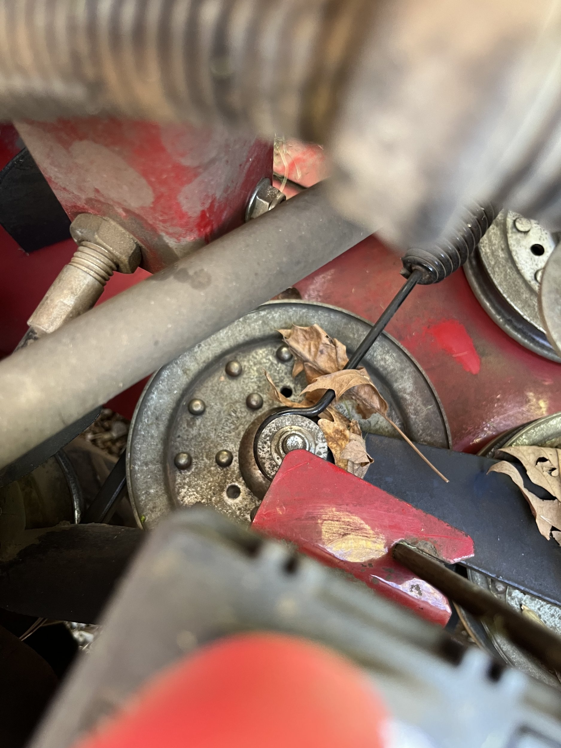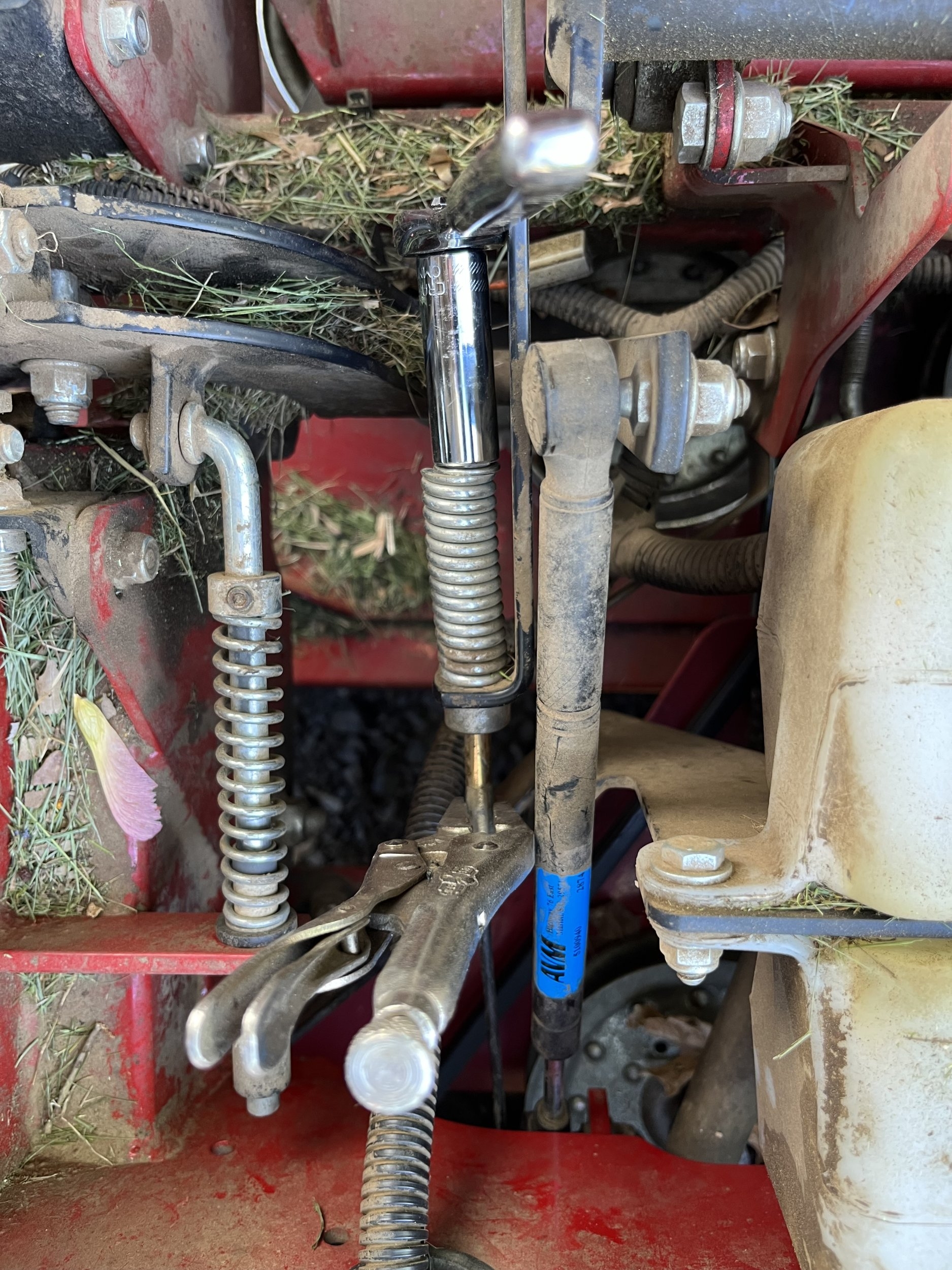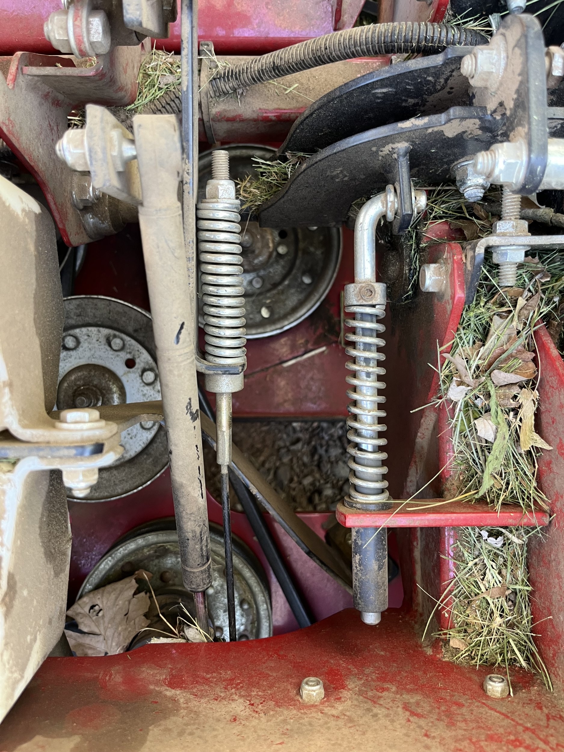 This year I noticed that my mower was moving around a little on my trailer and when I apply the brake on an incline it also moves. I started looking around and noticed that one of the cables is rather loose. As you can see I attempted to tighten it but it does not seem like it is making a difference and now that spring is about as tight as it is going to get. So not sure if I did something wrong or it needs replacing. The first picture is me trying to tighten the cable and the second is the other side for reference. The other ones are the linkage that leads back to the transaxle.