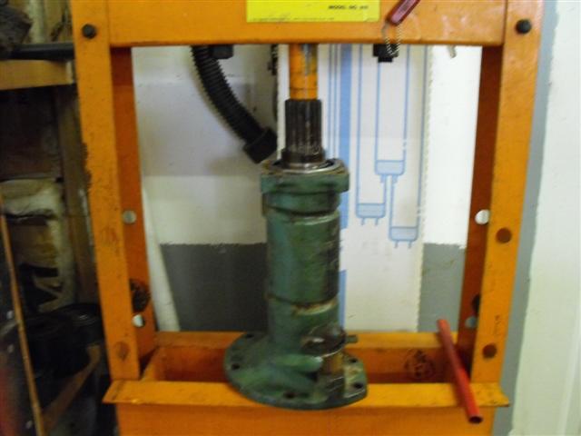 Had to use the press to get the collar and bearing out. I tried to use pliers and tap the collar but it wouldn't budge. I cut a 13" piece of 2 1/4" pipe to fit down into the axle housing to press out the bearing and seal collar. Pretty easy if you have a press but would be a real pain if it was still on the tractor. Would probably have to use a torch to heat the seal collar to break the rust bond.