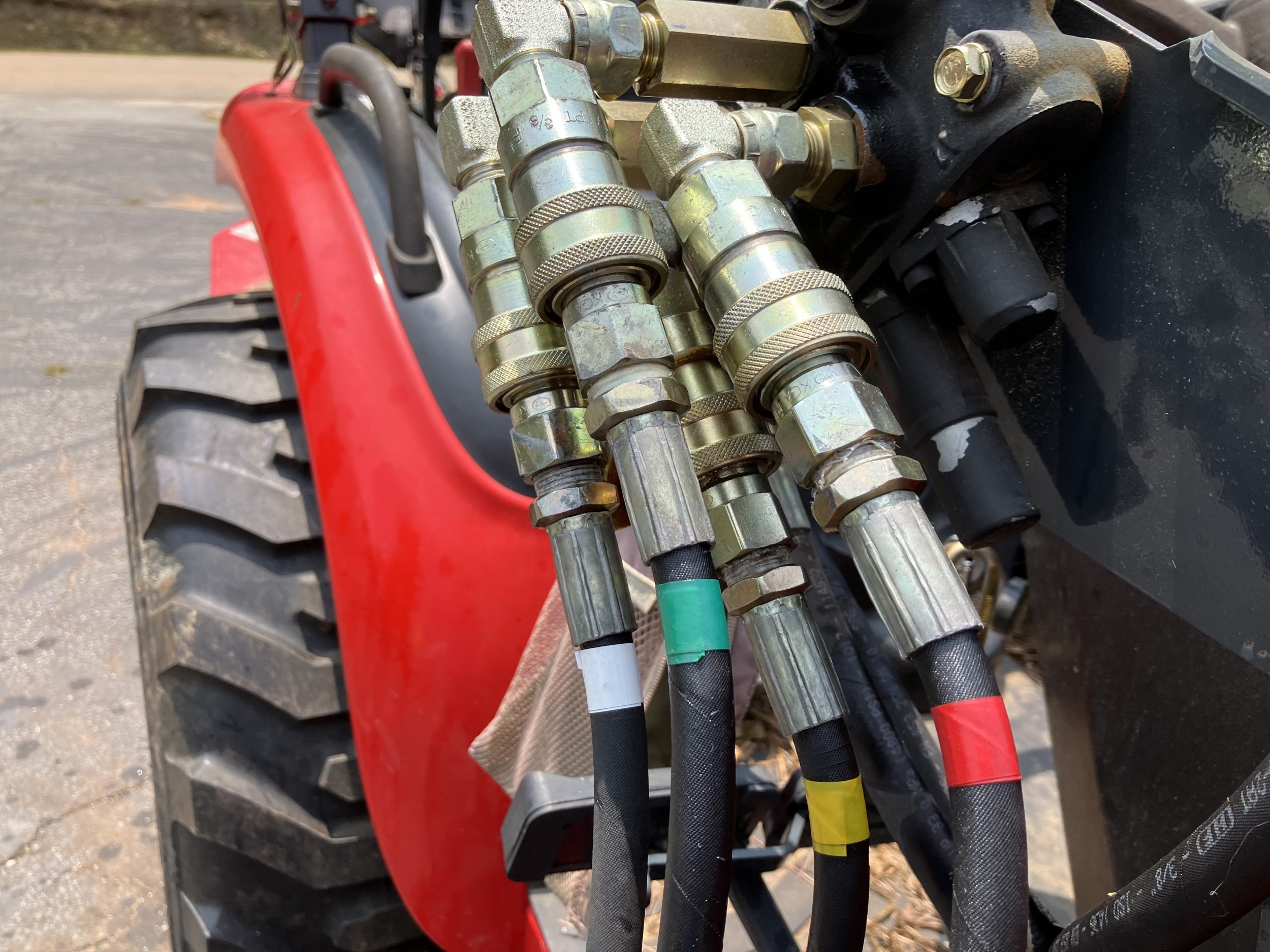 I have two simultaneous problems with my front BL100 Loader hydraulic lines. I was attempting to detach the front loader to be more agile in the forest.