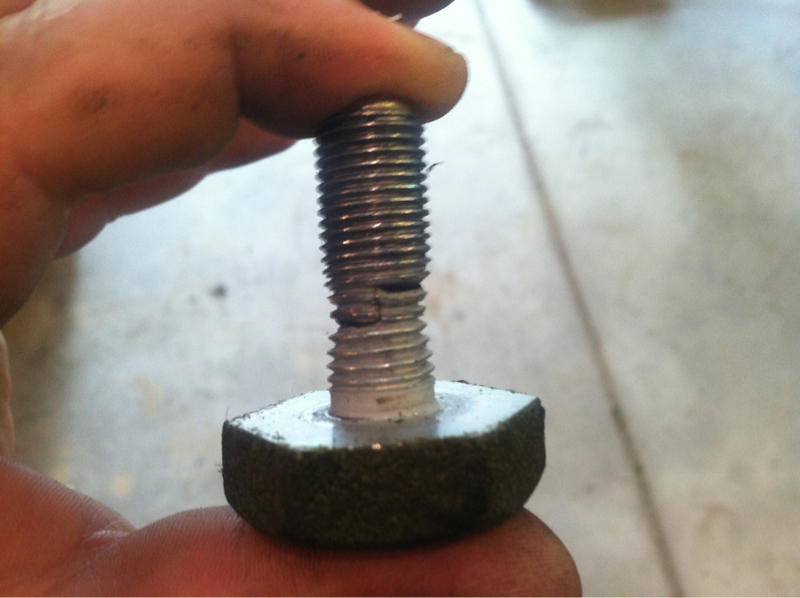 Thats too much stretch for it to be a very hi strength bolt. Id say Gr5/8.8 or less. When mine snapped on tightening there was very little elongation. I figured Gr8/12.9. ... [strange] :confused2: ... I did replace my bolt with a standard 8.8 grade and have had no trouble tho. But then the design of the 54" mower prevents any possibility of further tightening from incremental blade slippage, by use of that hex washer I referred to.Autopsy pictures