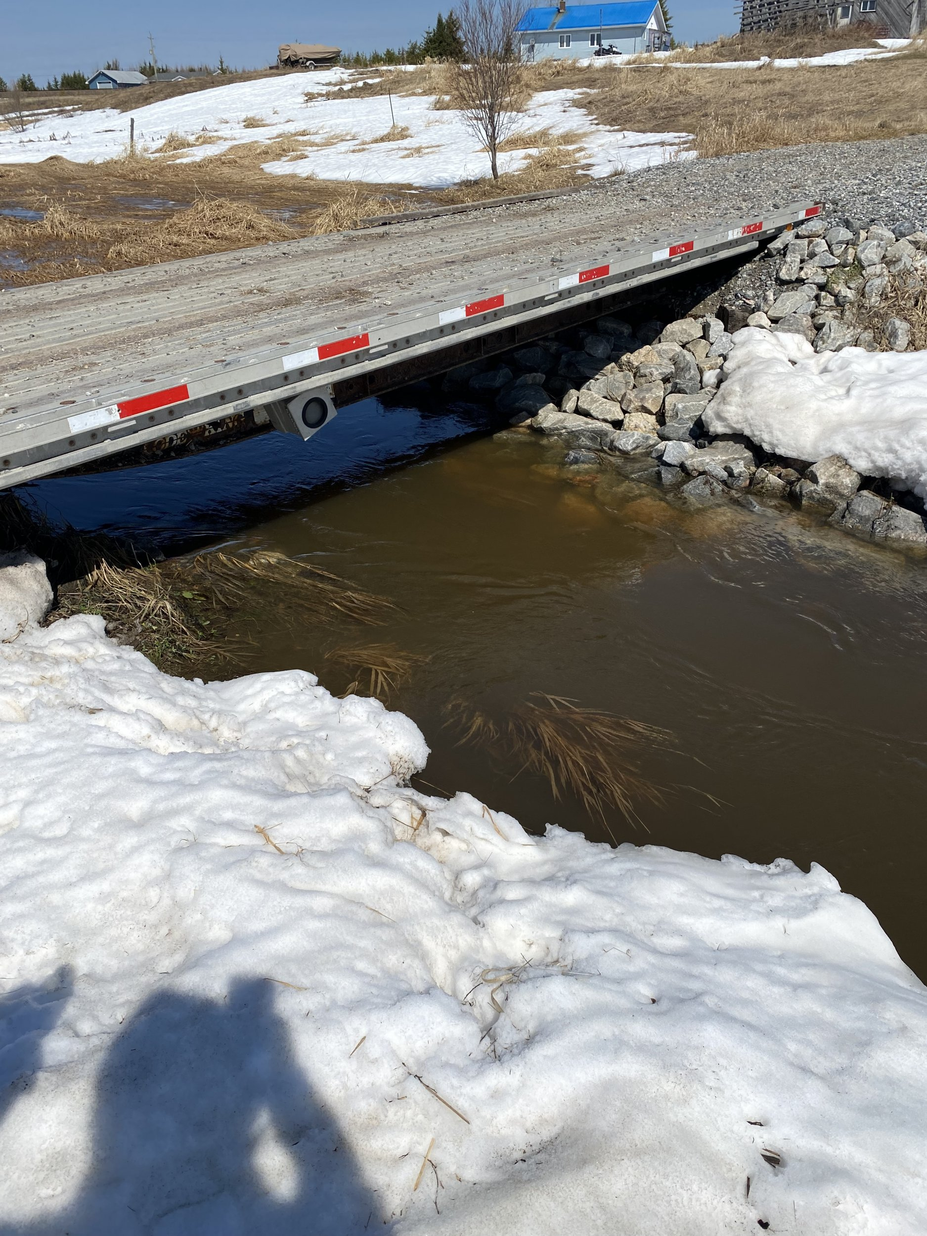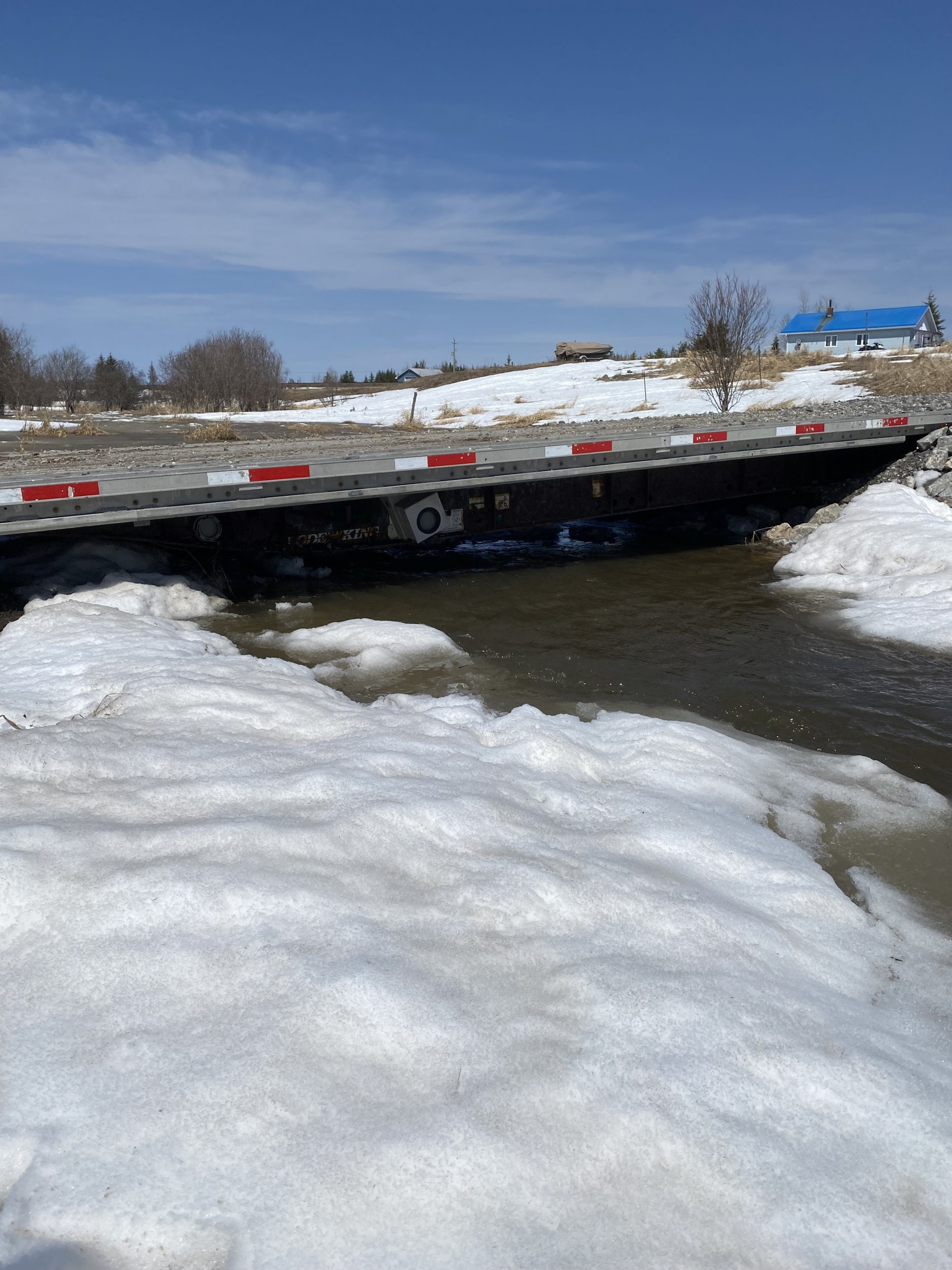 I do like your repurposed trailer bed idea however. My concern would be how slippery it would be when wet or had ice on it. Aluminum decks are inherently slippery when wet and I'd be worried about the under frame being cracked as well. I spent a lot of my working years repairing cracked frames on aluminum trailers. Seems as though they a crack over time.