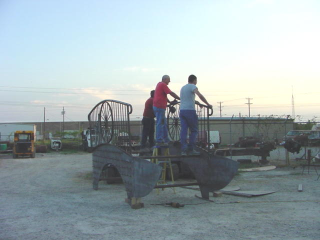 We made two wheels from scratch. At least eight different individuals were involved, seven of them varying in skill from minimal to curious about steel wheel production.
