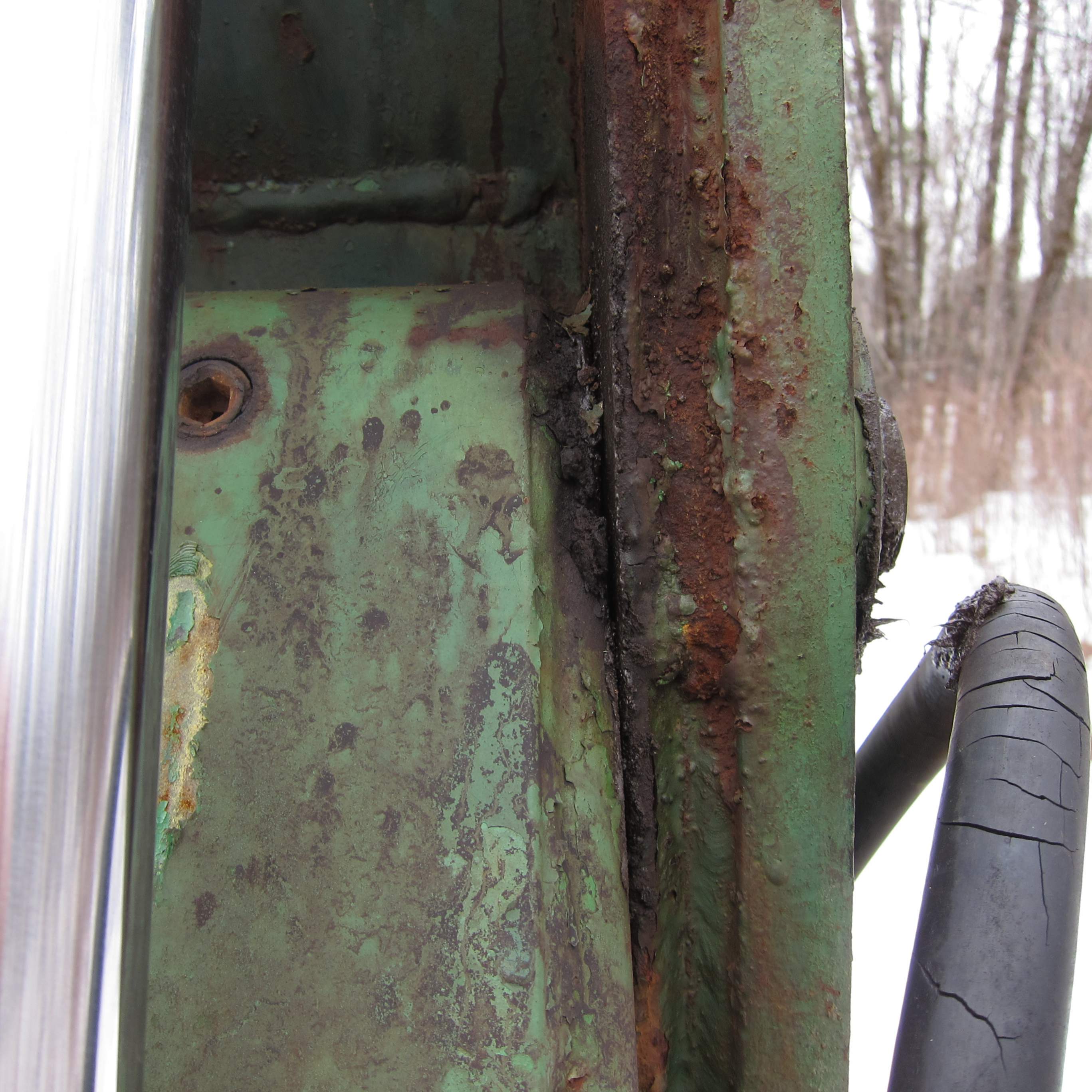 to provide some background: i have used this machine so far only to dig our well line trench, footings for piers, and our electrical trench. When the first rod bent I was working close to the operator's seat with the bucket almost perpendicular to the ground trying to chisel out a pine stump. I was rocking the bucket towards and away from the tractor trying to chip the stump loose, sometimes lifting the back wheels up while applying downward pressure with the dipper cylinder fully extended. This is when the first rod bent. the second rod broke while I was working in a similar position (close to the operator's seat) but only digging sandy loam soil from an 18" trench with the bucket, i.e little to no downward pressure. FWIW the dipper cylinder was painted a different color from the others, perhaps not original and possibly replaced before.