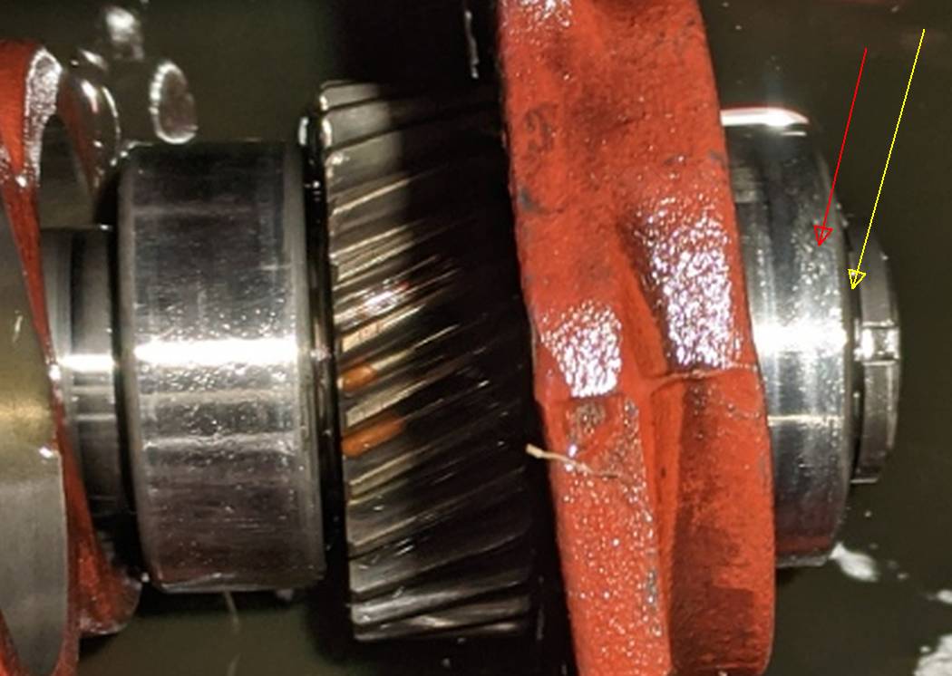The yellow arrow is not a groove. Just a bearing retainer/lock nut with a locking tab washer. The red arrow is the bearing.