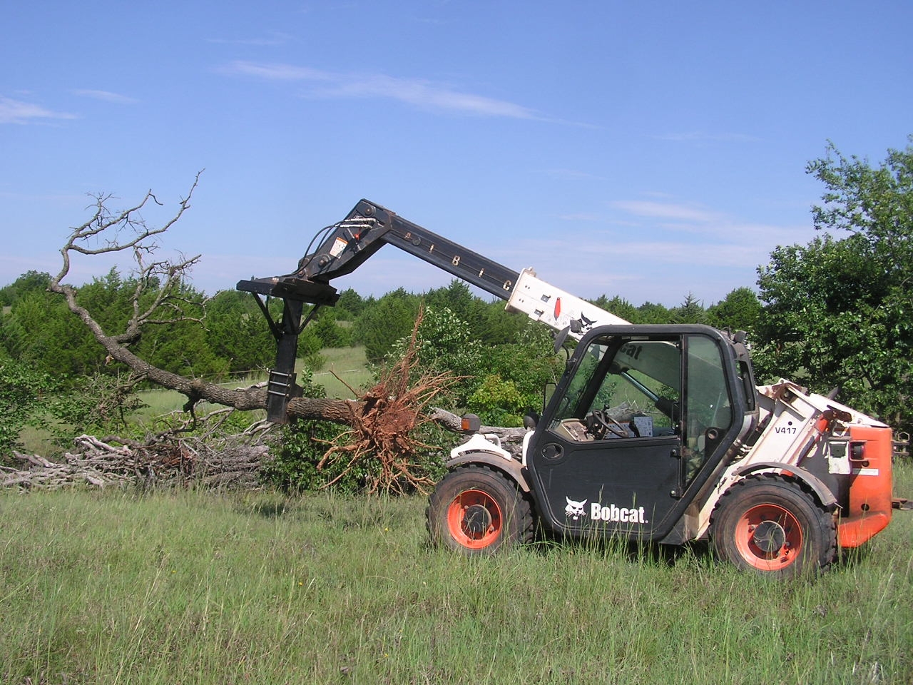 Usually push them out with the 1150, regardless of size. Leaves a little bit of a stump hole, but when done pushing trees out with 1150, a pass back over the area back-blading with the 1150 just about erases the holes.