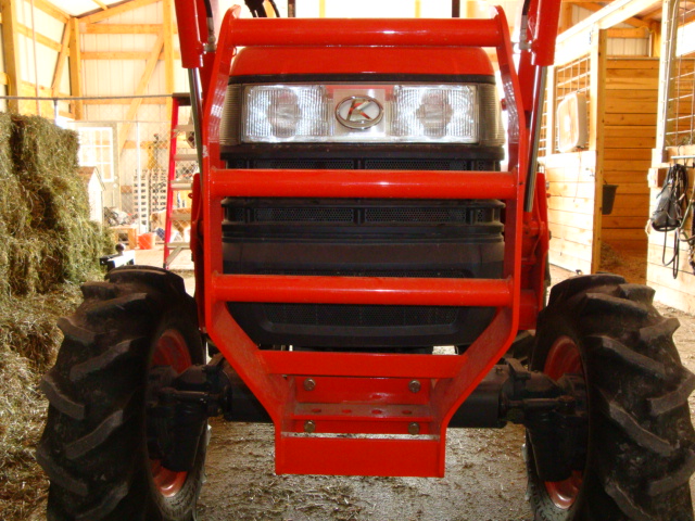 OK you fellow orange machine jockeys. Show me some pics of your brush guards, fabbed or purchased. I've got a '04 M4800 w/o FEL:( and no front suitcase weights. I'm considering building a brush guard for it. Thanks for all the input.