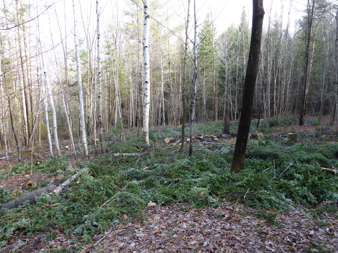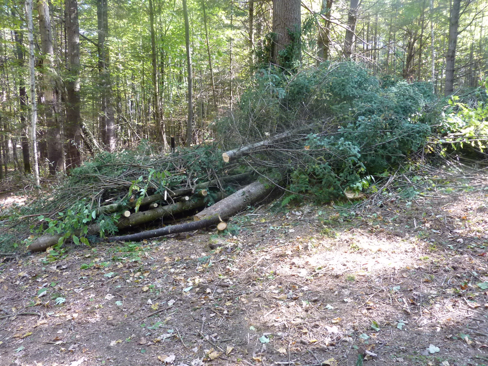 This gully is scar left by over cutting, over grazing and over use in the 300 year homestead history. Now hidden in mature forest again. It is now a valuable farm asset. Tree/brush recycler. 1/4 mile from were the trees are added the gully ends in low slope woods and pasture enriched by what was once waste.