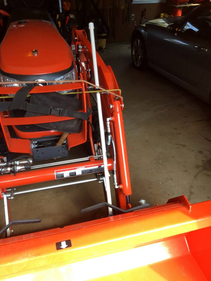 After cleaning dried mud out of indicator rod mounting hole, I measured from hole to top of tube when bucket is maxed out. Added 1" for 90* ange that mounts into hole. Figure I will add 2" to stick out of tube. 40" should do it...
