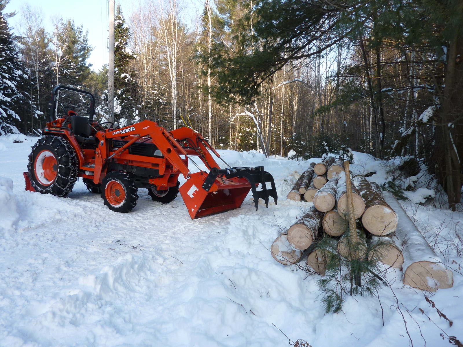 Getting ready to take delivery of a new Mahindra 4550, comes standard with the bucket. one of the main uses for this tractor is keep my woodmizer feed with logs.
