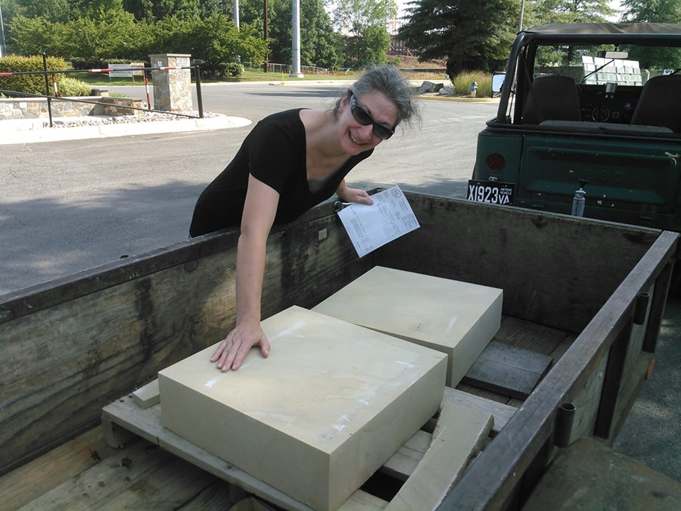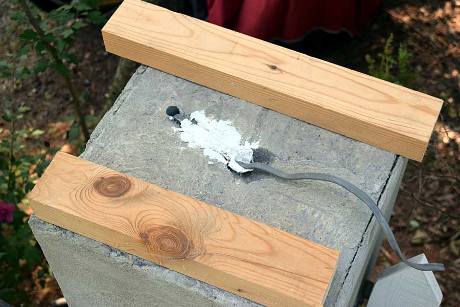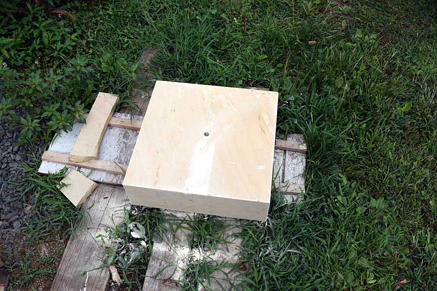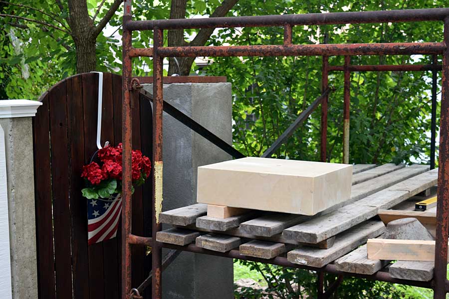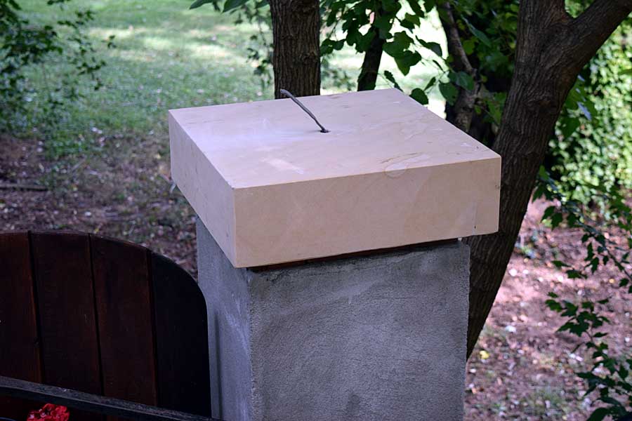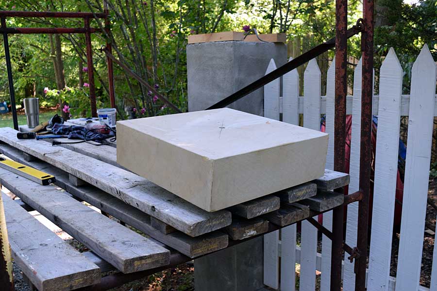 Operation cap stone. Tennessee lime stones for pillars: 20"x20"x6" - it comes to about 200 pounds. I bought them as Christmas present for my wife, she loves stones. So far so good - but we shall see what my back will have to say tomorrow.