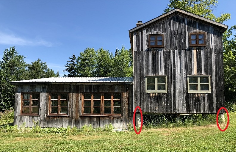 Yes it was an old building on sonotube (9 of them). I think originaly there were not install strait. So I arrange the worst one as the best I could and I install 1/2" steel cable in angle between 6 of then. You can see them if you zoom. And now for the last three year I measure the angle to verify if it’s stable.