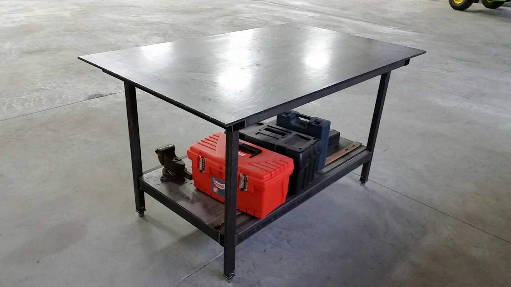The top on my table is 36x48 and the casters are 28" CTC, and it's 37" high. I did a mockup first with longer legs and shortened it to a comfortable-for-me 37". Quality of life has improved greatly with completion of the table. I've often complained that although I love working on projects, till now the welding was done on sawhorses with a piece of plywood or while crawling around on the blacktop.