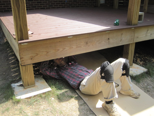 Checking this thread out again, I noticed the issue on the exposed ends of the deck. I'm sure the builder will make it look OK with added trim boards, but for anyone else doing a composite deck, consider "picture framing" it. This is what my contractor did with my Azek deck and it really worked well. It has a slight overhang on all sides. The attached photo shows steps on the deck. We used a contrasting color to give a "visual cue" for safety.