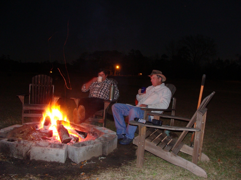 Here is my fire ring. I used concrete blocks that I had on hand. They are starting to crack, but have been in service for a couple of years and seen many a fire. I would love to have a stone pit but rock is sorta hard to come by in South louisiana:) Nothing like relaxing around a crackling fire under a star filled sky and listening to the coyotes howl off in the distance...
