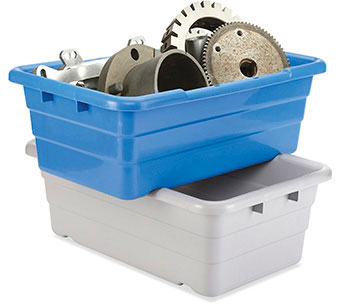 These tubs "cross-stack" so I can stack 3 or 4 of them in the back of my pickup, run a ratchetstrap over the top tub and cinch the stack down.