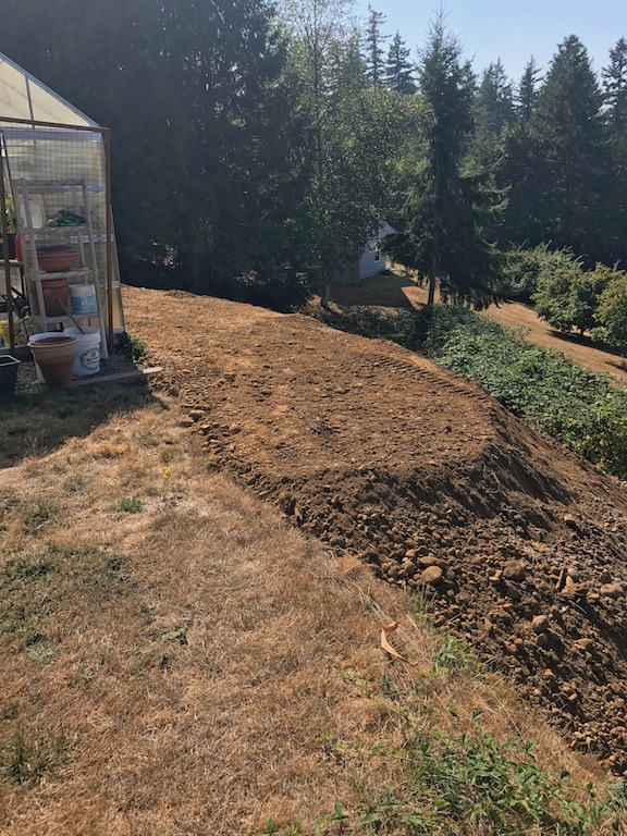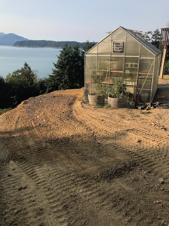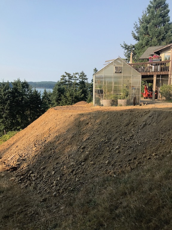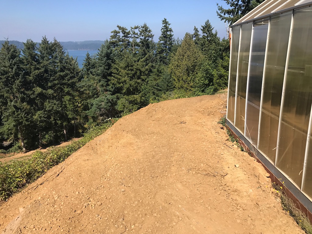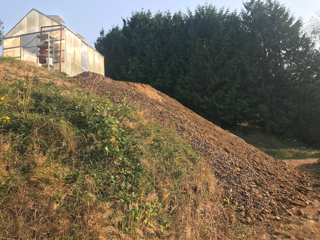 The bottom blocks are 5ft deep so they have to cut back the bank a bunch. I am getting a mix of sandy/loam, old drain rock, and a little clay, otherwise pretty clean. The first pic below is the before shot. I built the greenhouse on the edge of the steep bank. Made the mistake of not leaving a foot path all the way around trying to fit it into a limited space. Now a skid steer is filling and grading a wide path around the backside and I can't be happier. This is probably less than 25% of the fill that is coming my way. It is an endless pit so I can take all and more!