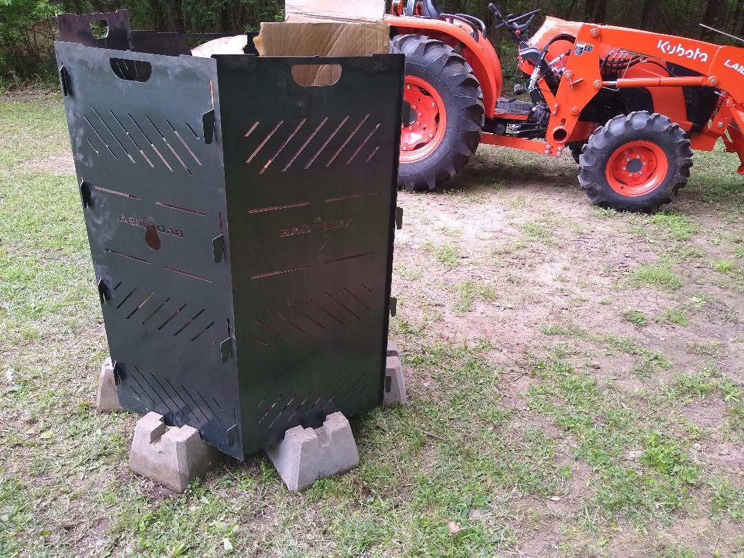 There was a thread on burn barrels a few years ago where a guy from Tasmania explained how to make one that would burn anything by putting vents in the side and angling them so that the air sucked in swirls in the barrel. Mine have three levels of vents angled with a crow bar and sledge hammer. Once you get the fire started it will burn wet limbs, wet paper, basically anything else you can dump in it. Nothing left except fine ashes.