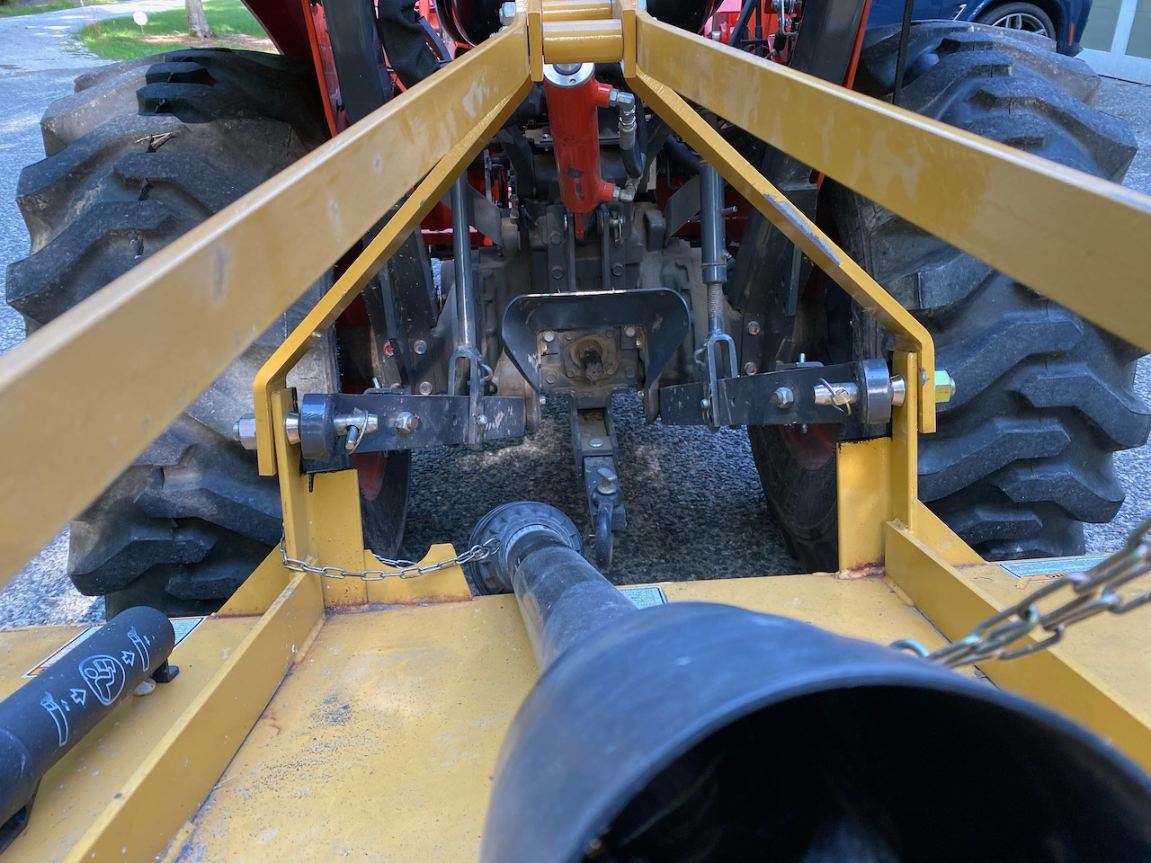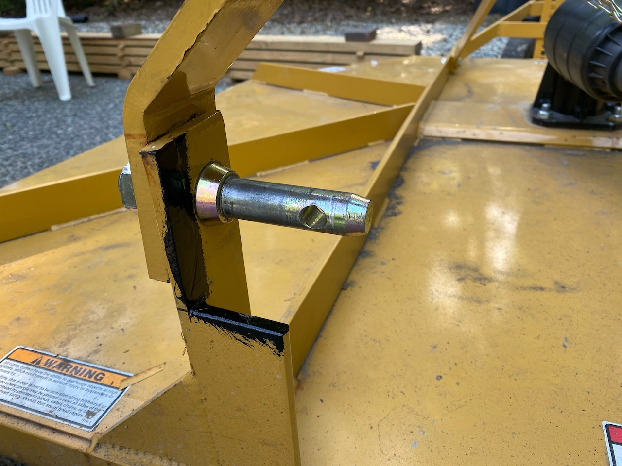 I wanted to bump this up. I finally got sick of this POS and made a modification. I cut a section off the front of each angle iron post, which allowed me to flip the pins to the inside and let the 3-pt lift arms engage the pins from the inside of the A-frame. Was not thrilled about potentially weakening the posts but I have mowed with it three times now and it hasn't bent. If it does I am prepared to weld a reinforcement to the outside.