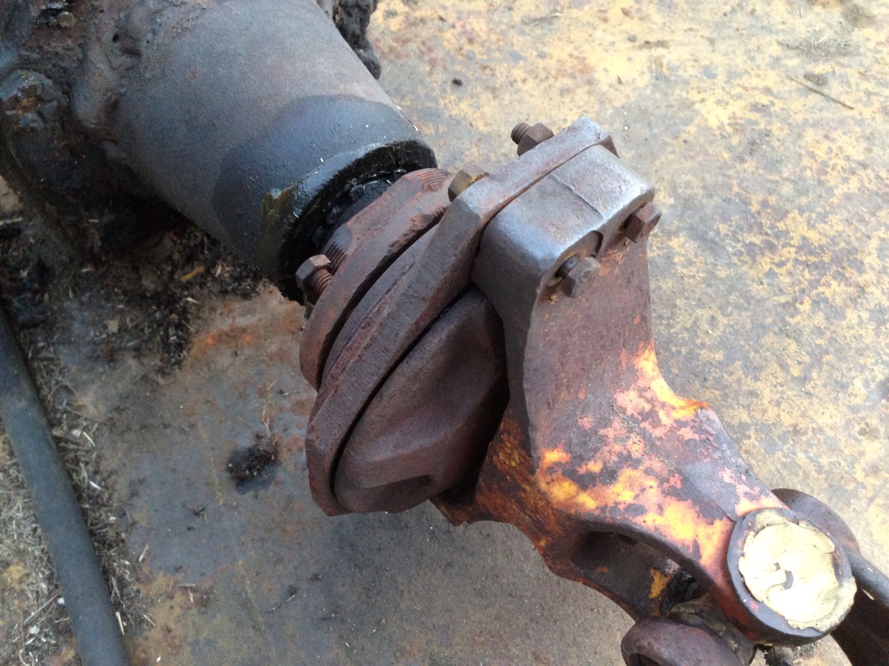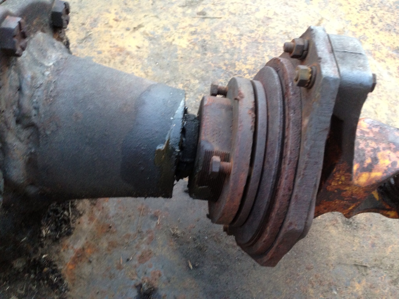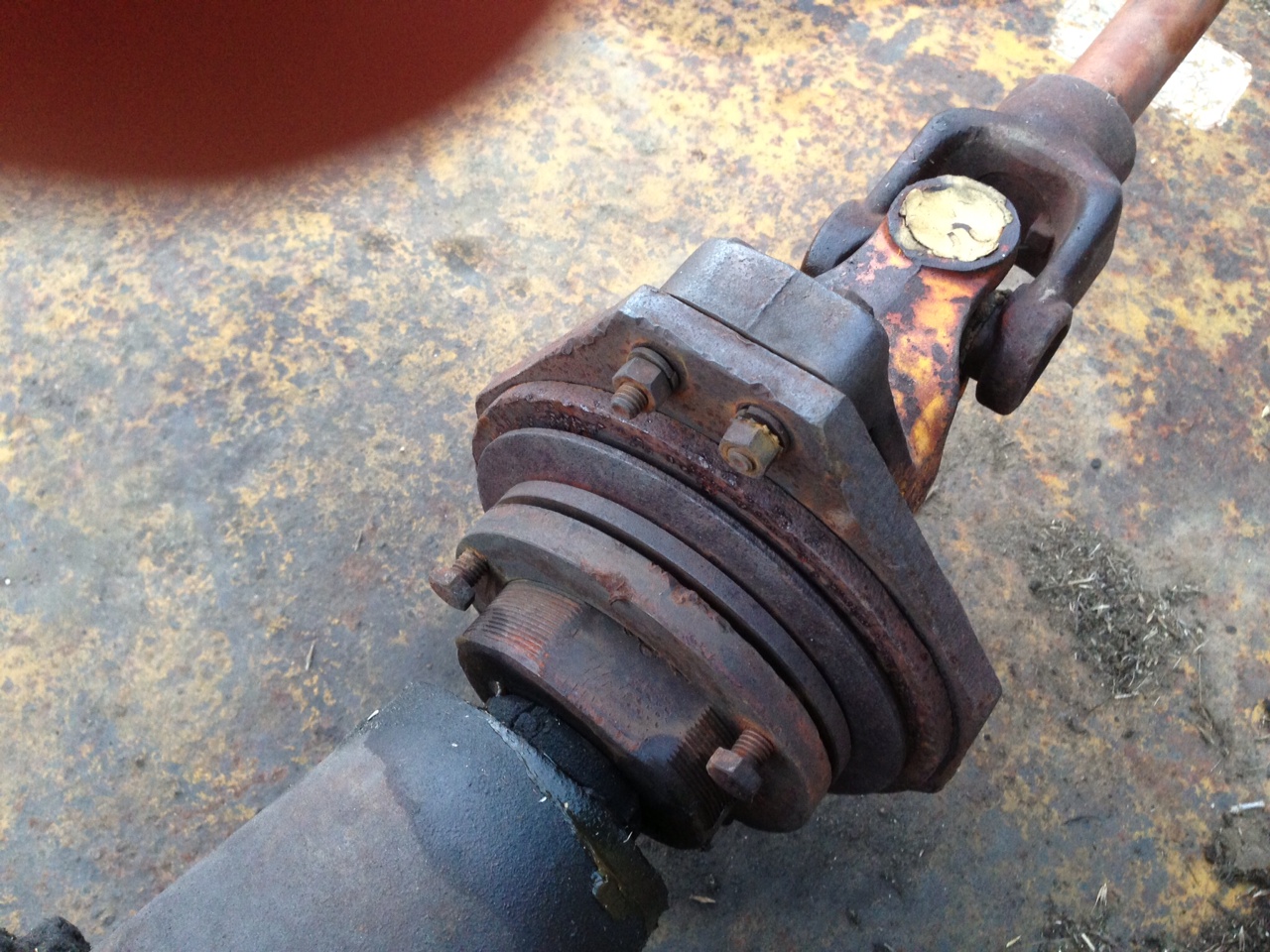 Ah, ok, good pix! That sure looks to me to be a slip clutch between the main PTO shaft and the main gearbox input, but I have never seen one quite like that before so I'd better not comment any farther regarding its function or lack thereof! It does look kinda like there might be some parts (springs?) missing that would supply "clamping" force to the clutch friction disk.