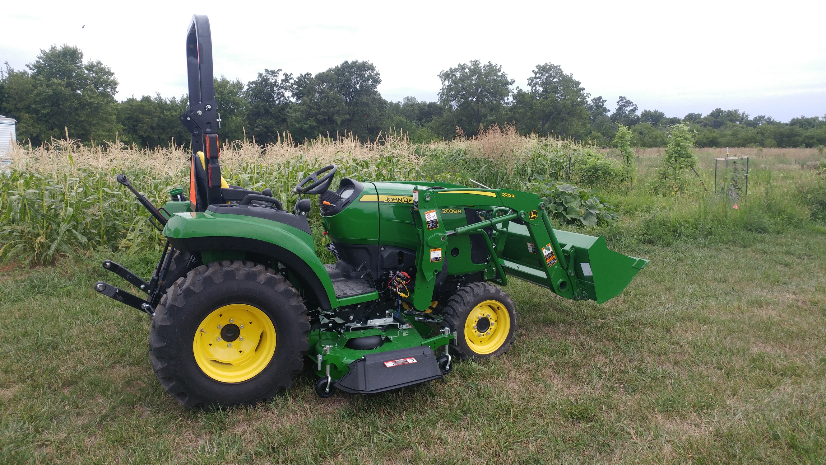 I really like the 2038R and you can see that it's on my short list. Congrats on your purchase! $10K more though the 3520 and B3350 and I just spent $$$ on the land. The backhoe is another struggle. I want one more than I need one. Same as anyone else that doesn't use it to make money. For $9K I can rent one nearly every weekend for the rest of my life and still save money. I rationalize it with, "I need the ballast" or I can use it whenever I want. Put in a drainage ditch I didn't know I needed, "we need a coy pond right there" etc...