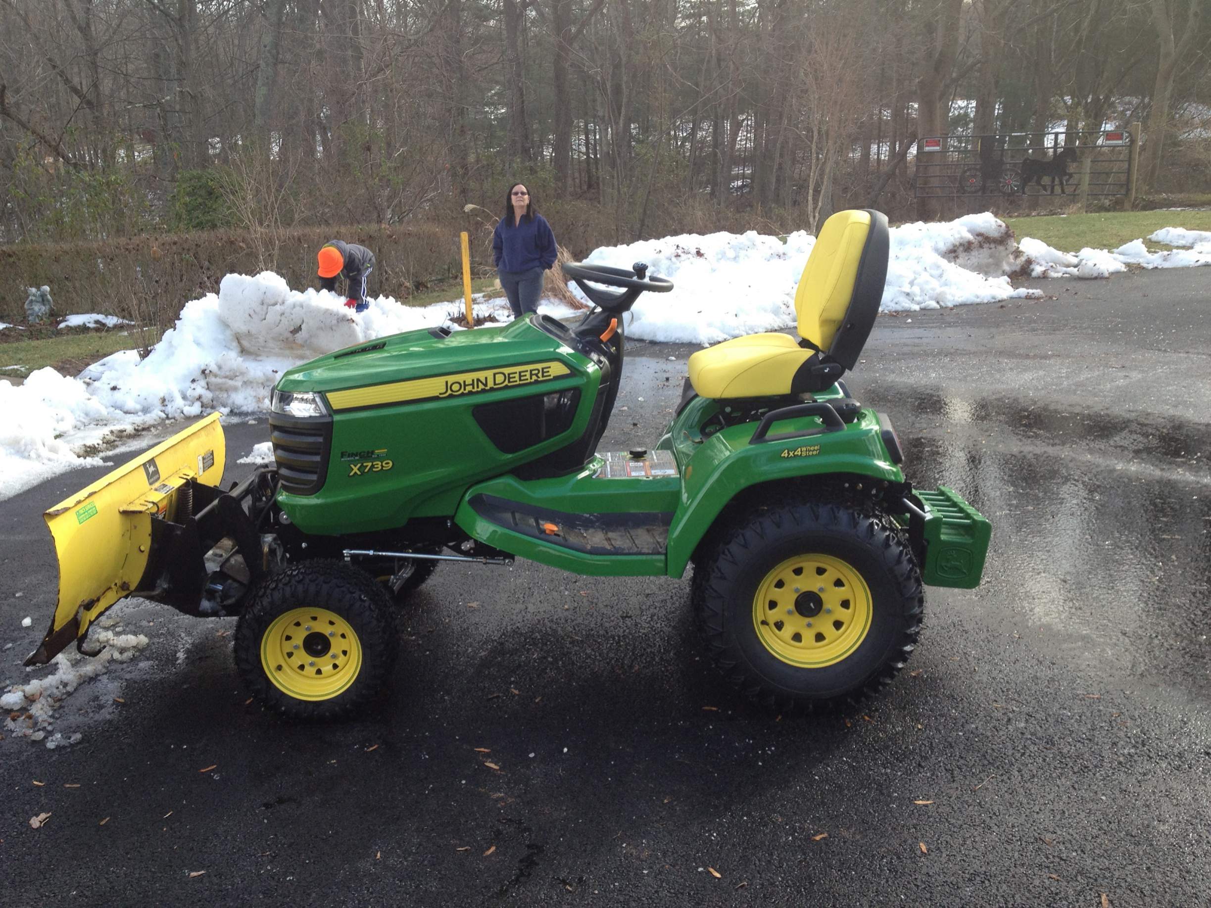 Tractor delivered yesterday. Real nice! However, my old 54" snowblade from my 425 will not fit without hose extensions and right angle adapters. So, calling for more snow today and no parts to fix it.