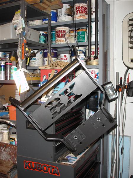 Of course that spelled quality monster garage time to me: I fabbed these struts to transfer some of the load to the front bumper, and in the process painted the front bumper to match the canopy arms.