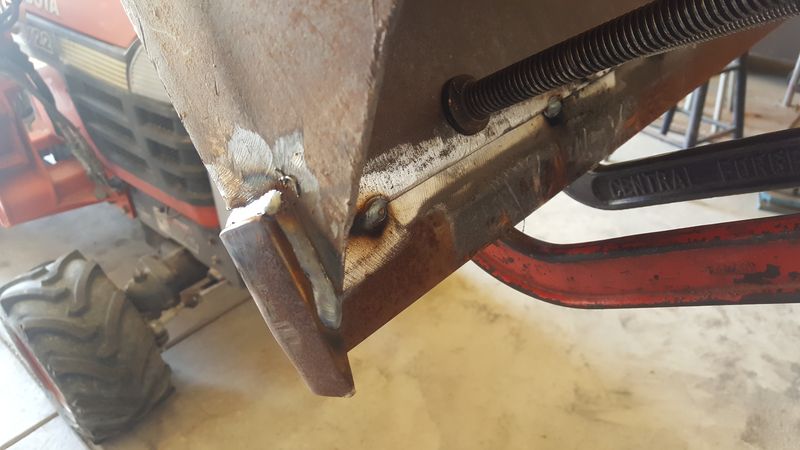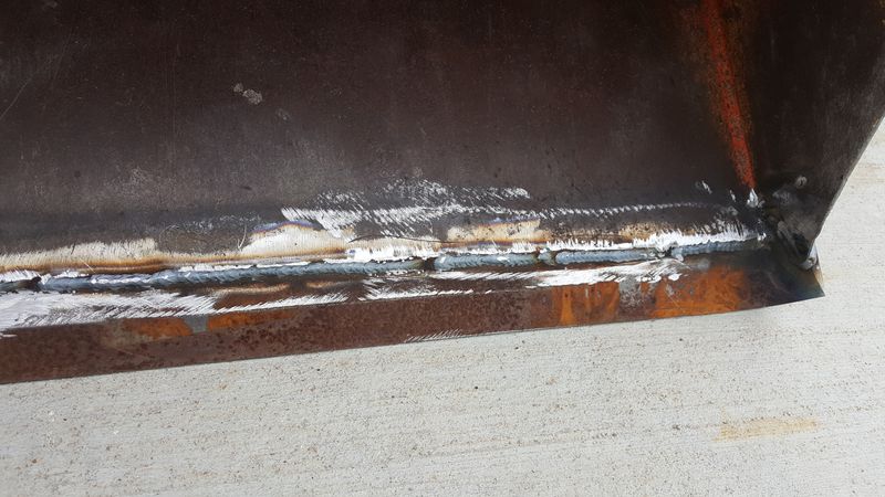 Being my edge was so bad, it needed a new one. I tried adding weld material to the edge to get me by for a few days but it didn't last long. Adding more weight with an additional 4"x1/2" plate was something I would rather not do. This thing barely lifts a bucket load of top soil as it is. LOL