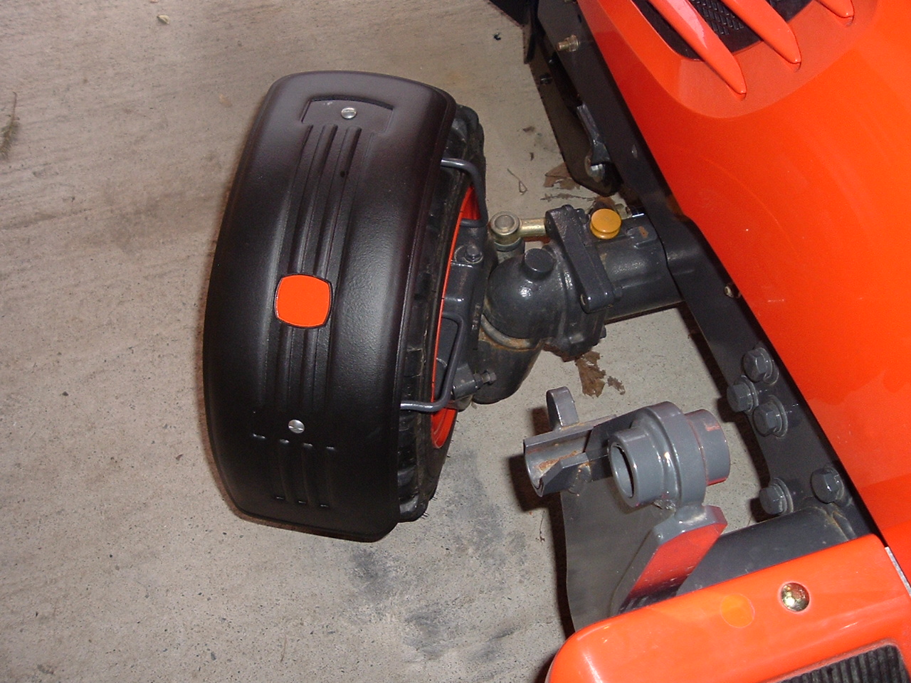 These are the front fenders that John Deere sells for $32 each the brkts are what I made up total cost under $75 for both they seem to be very strong and durable Ive had them buried in the snow over the wheel if any is interested in making I will send more details