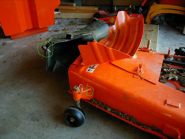 I was a little dismayed that you need to take the lift brackets off the 3pt lift arms, but when you think about it, since the mower and the 3pt mechanism use the same lift hydro there really isn’t another way to do it. Wait, before I get flames on that I do recall someone on TBN that built a really slick quick hitch type mechanism for their BX bagger. Getting the thing on is a bear, I wrestled with it a while before I came to the (erroneous) conclusion that something was not sized right. I called Russ and he sent out his head mechanic the next day to have a look see. Tractor newbe that I was, his mechanic explained that 3pt hitch implements are not the micro tolerance machines that I might think they are. They often take a mallet whack, drift pin, and foul language to get on. Using all three, he and I were able to wrestle the thing on.