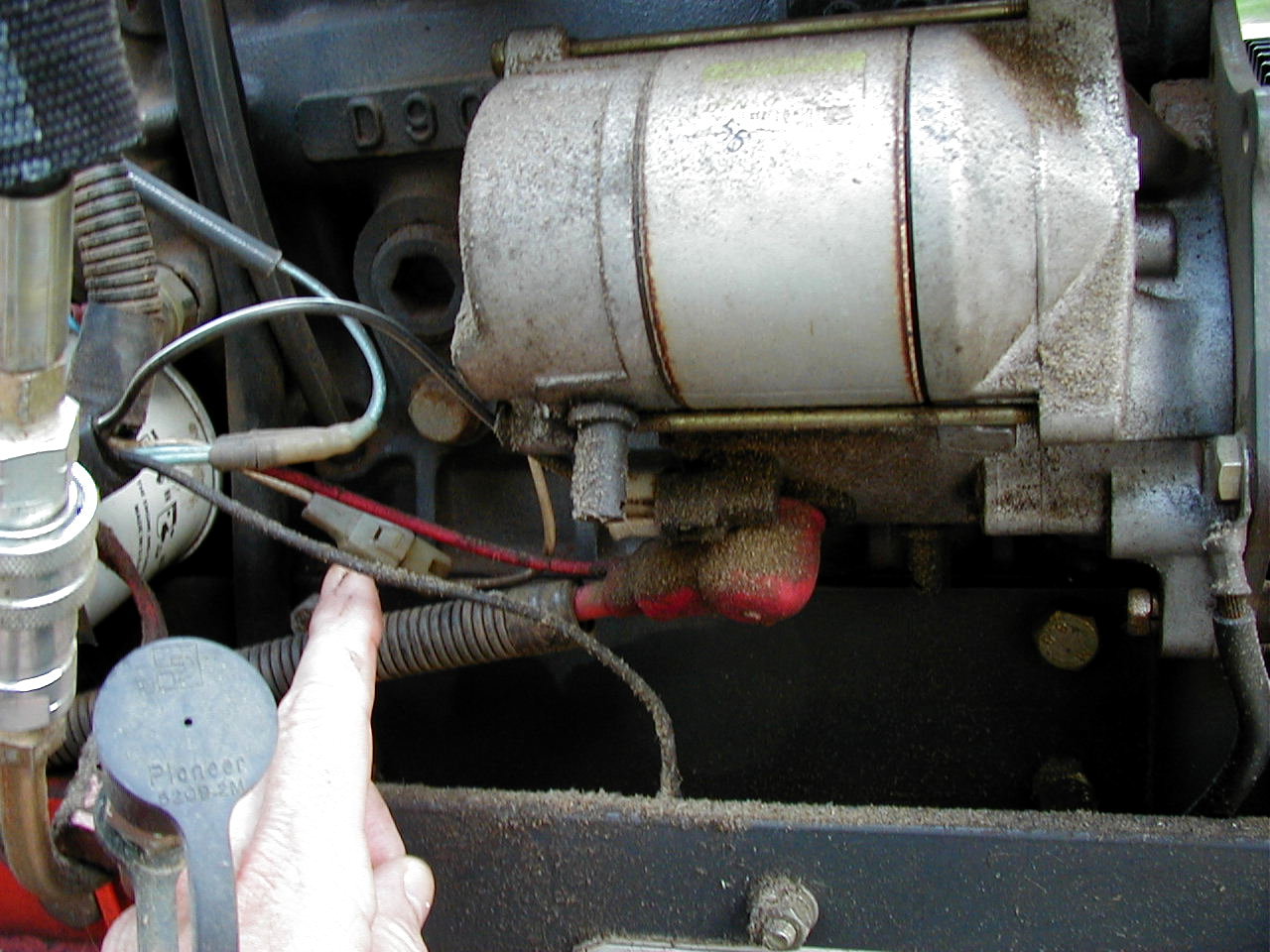 I took my starter off to have rebuilt but when I went to put it back on (weeks later) I cant remember where the white wire (the one that comes apart in the middle) connects back to? If I hook it up on the post with the 2 red wires the tractor starts fine, but wont shut off, if I put it on the ground bolt (where it just does reach to and looks like it belongs) the tractor turns over but wont start? I dont know if something went wrong with the rebuild or I am missing something? Does anyone have a picture of one that shows all the wires that they can send me? jhamilton@teklinks.com