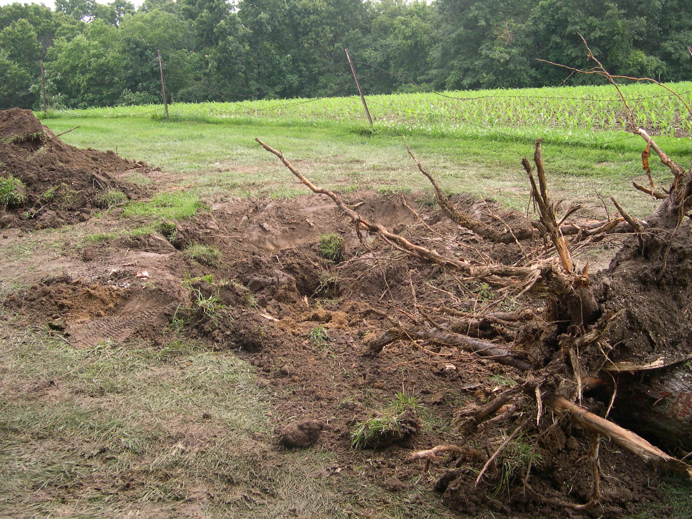 I managed to get this one out with a lot of digging with the loader in soft wet soil. I wish I had a backhoe!